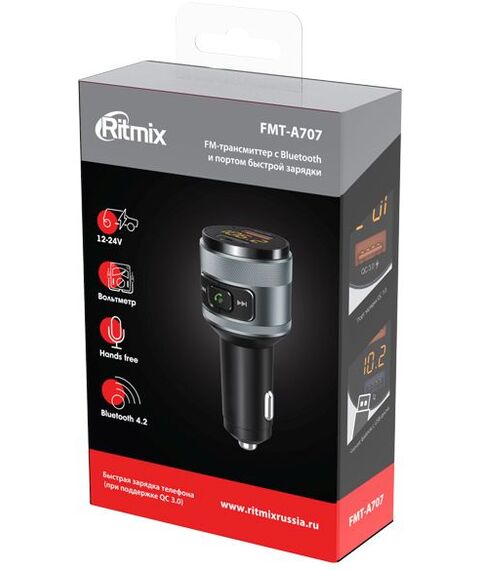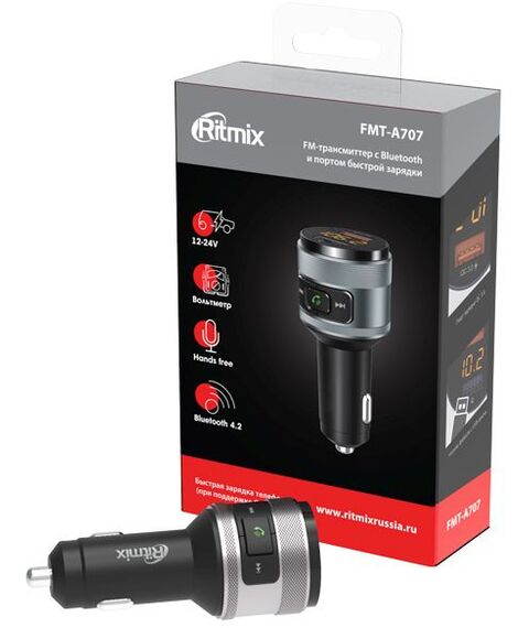 Автомобильный FM-модулятор Ritmix FMT-A707 черный MicroSD BT USB [80000131]