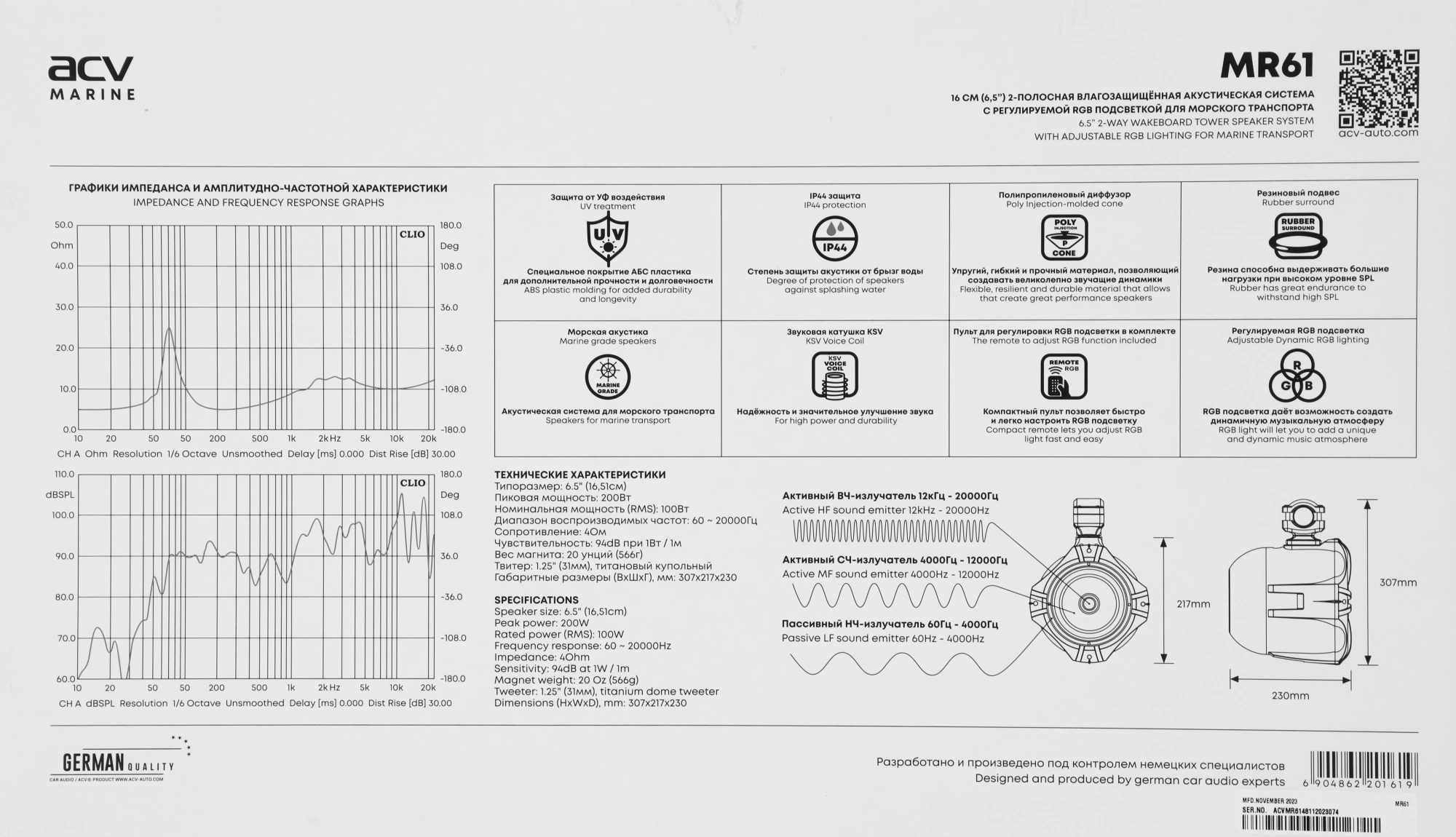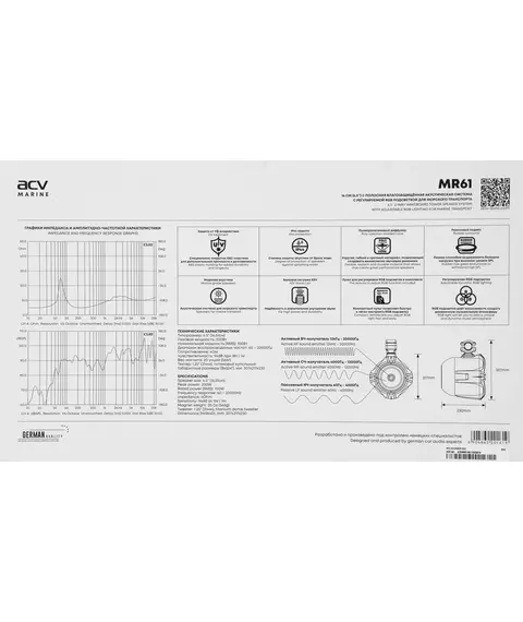 Колонки автомобильные ACV Marine MR61 100Вт 94дБ 4Ом 16.5см (6 1/2дюйм) (ком.:2кол.) коаксиальные двухполосные [40585]