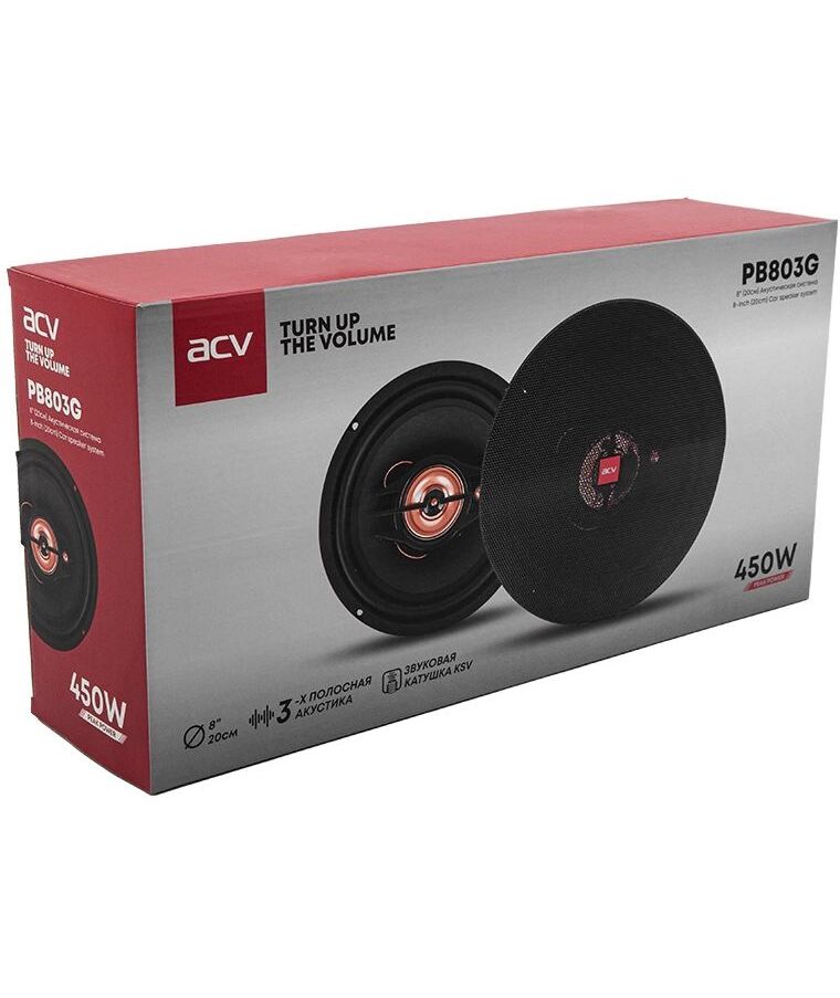 Колонки автомобильные ACV PB-803G 450Вт 90дБ 4Ом 20см (8дюйм) 2 шт коаксиальные трехполосные [31976]