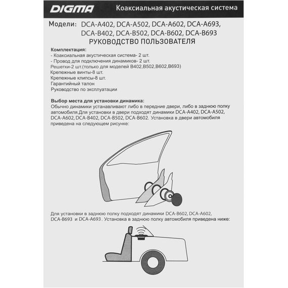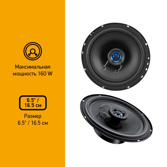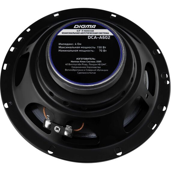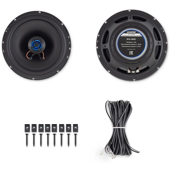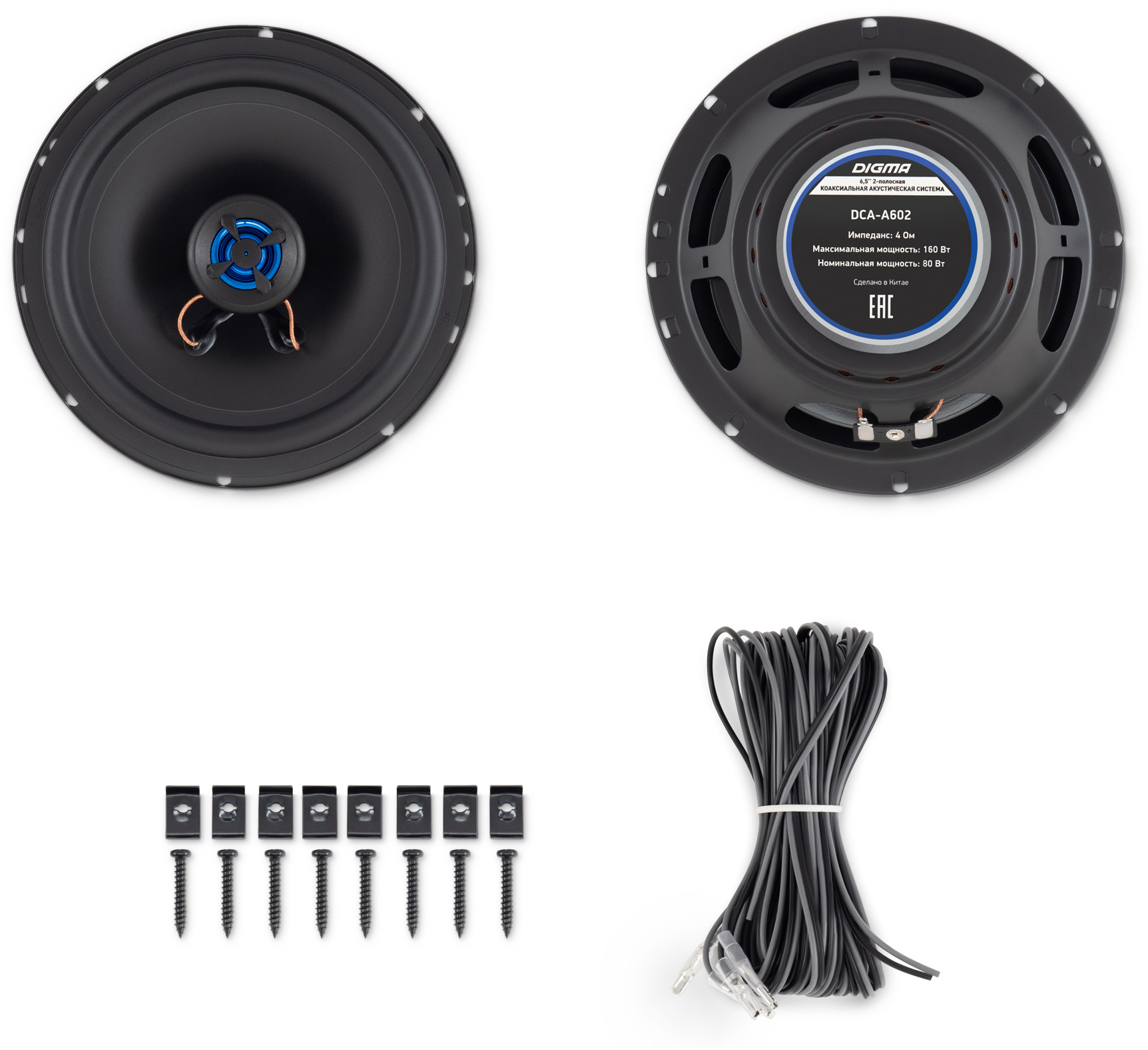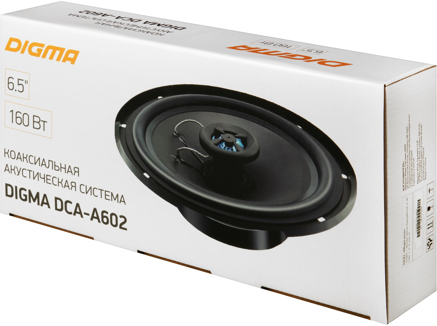 Колонки автомобильные Digma DCA-A602 160Вт 90дБ 4Ом 16.5см (6 1/2дюйм) (комплект: 2 колонки) коаксиальные двухполосные