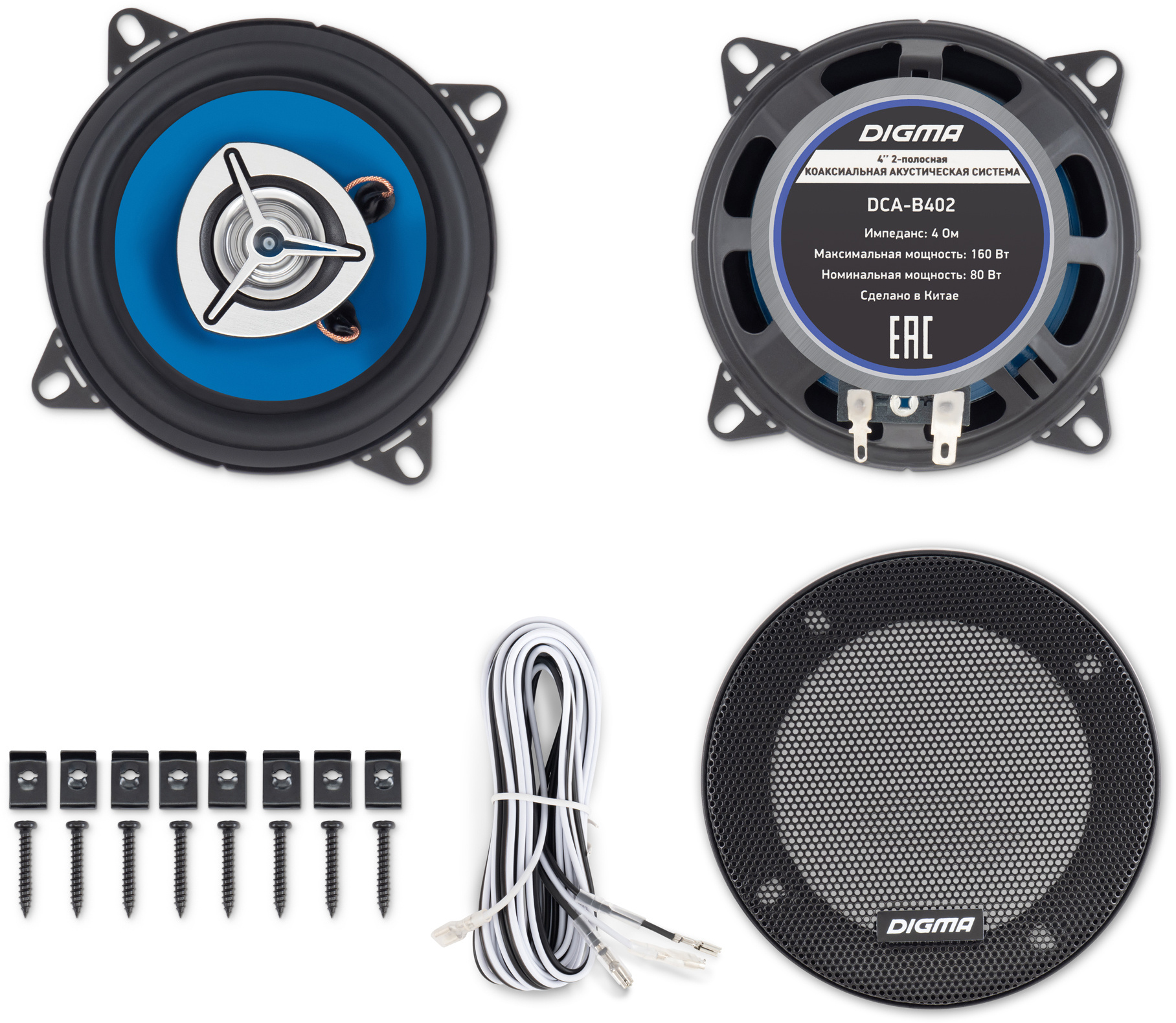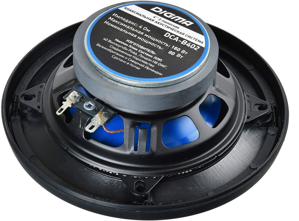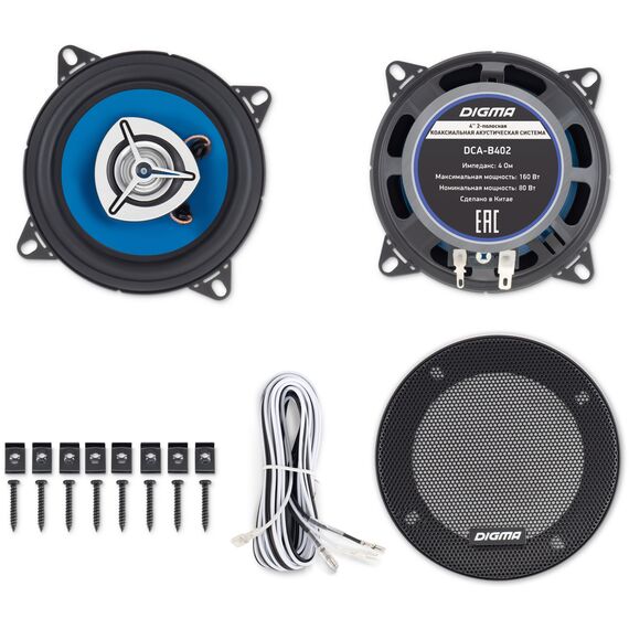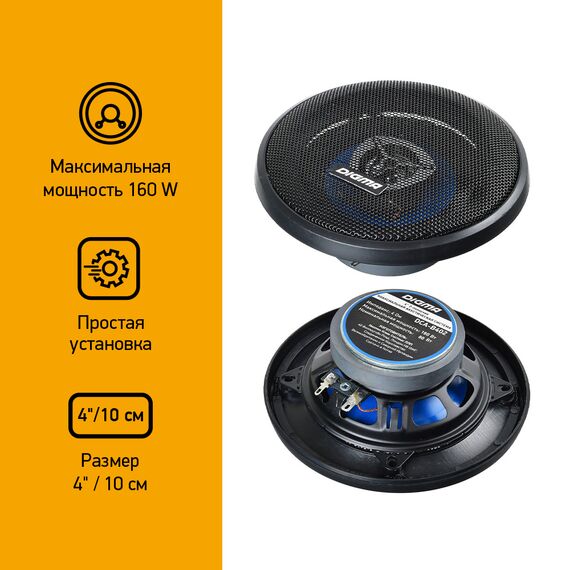 Колонки автомобильные Digma DCA-B402 160Вт 90дБ 4Ом 10см (4дюйм) (ком.:2кол.) коаксиальные двухполосные