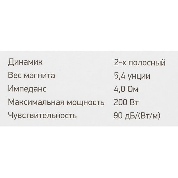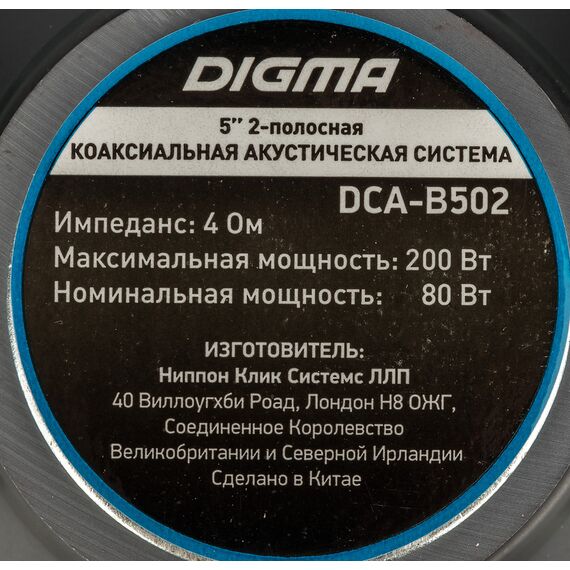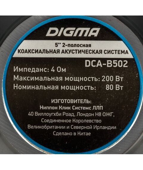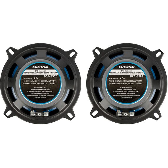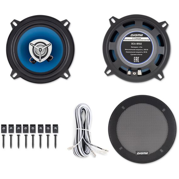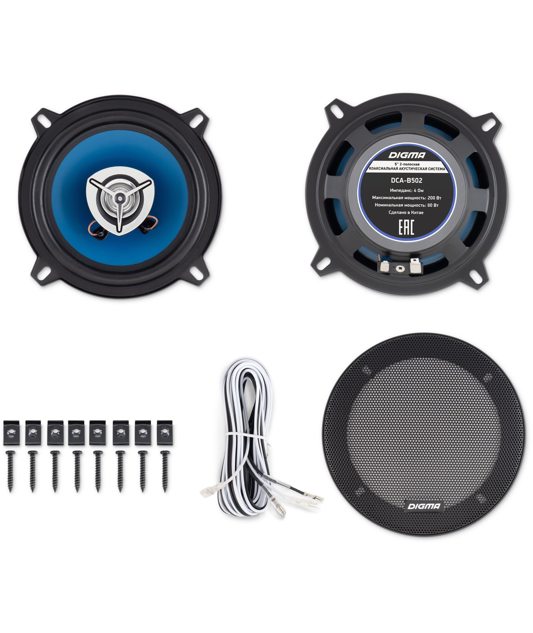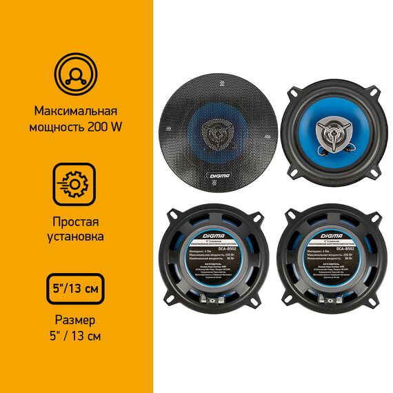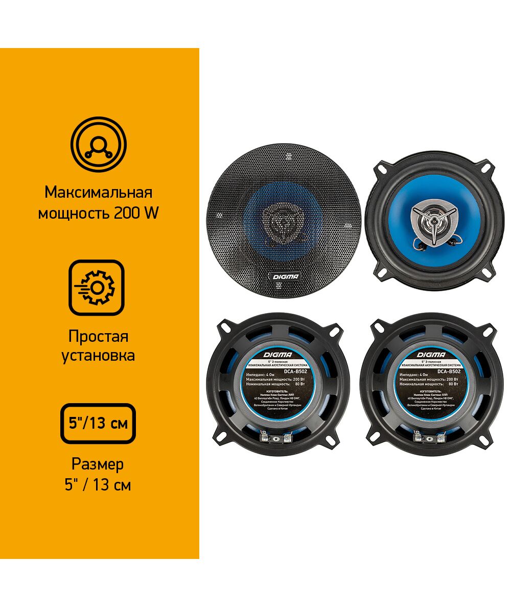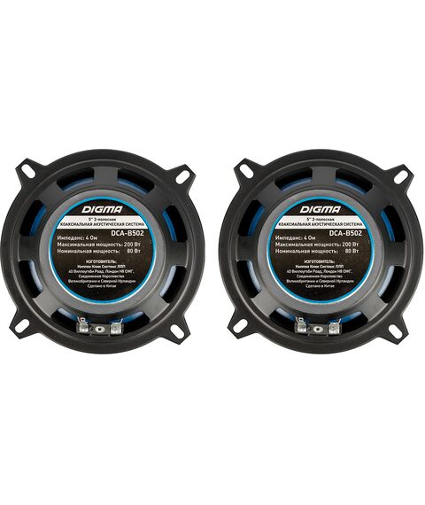 Колонки автомобильные Digma DCA-B502 200Вт 90дБ 4Ом 13см (5дюйм) (ком.:2кол.) коаксиальные двухполосные