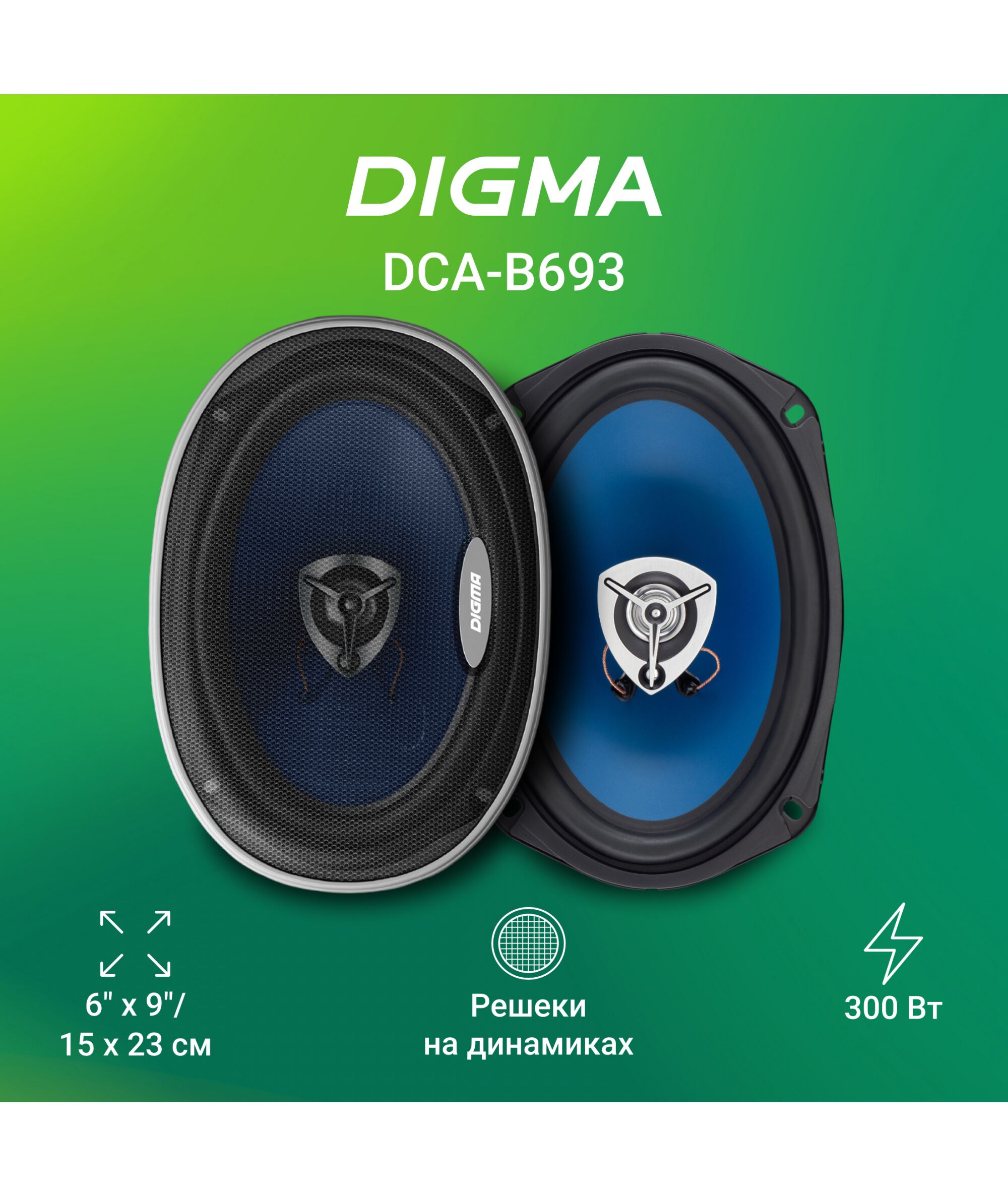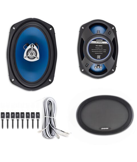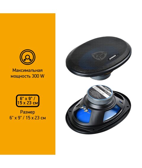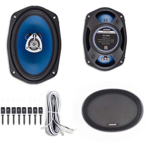 Колонки автомобильные Digma DCA-B693 300Вт, 90дБ, 4Ом, 15x23см, коаксиальные трехполосные