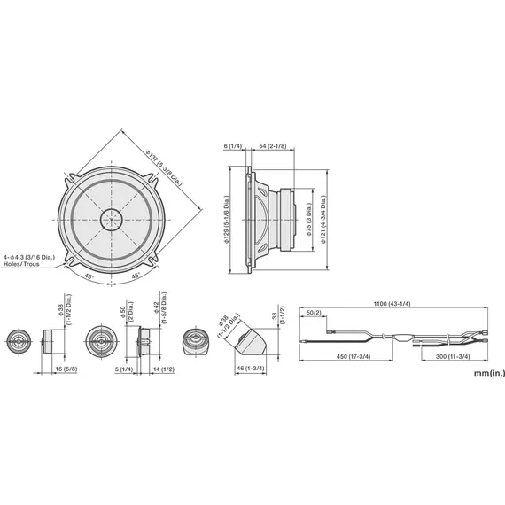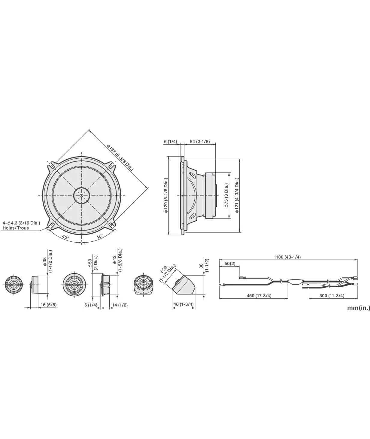 Колонки автомобильные Pioneer TS-A1301C 300Вт 89дБ 4Ом 13см (5дюйм) (ком.:4кол.) компонентные двухполосные