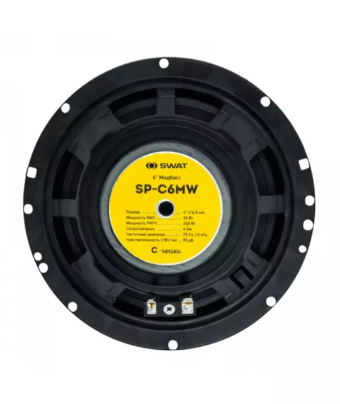 Колонки автомобильные Swat SP-C6MW 240Вт 90дБ 4Ом 16.5см (6 1/2дюйм) 1 шт коаксиальные однополосные (без решетки)