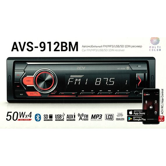 Автомагнитола ACV AVS-912BM 1DIN 4x50Вт [35958]