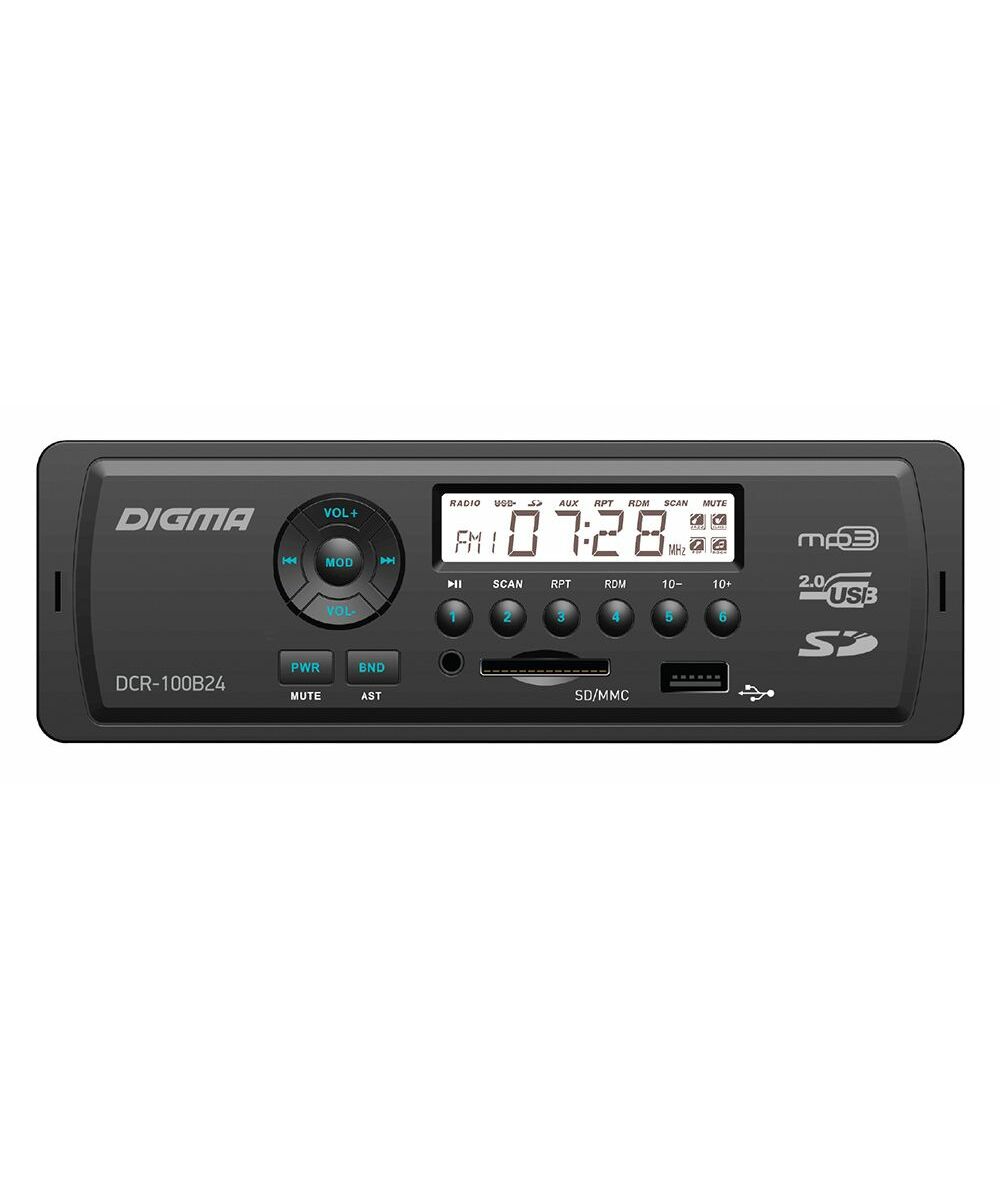Автомагнитола Digma DCR-100B24 1DIN 4x45Вт