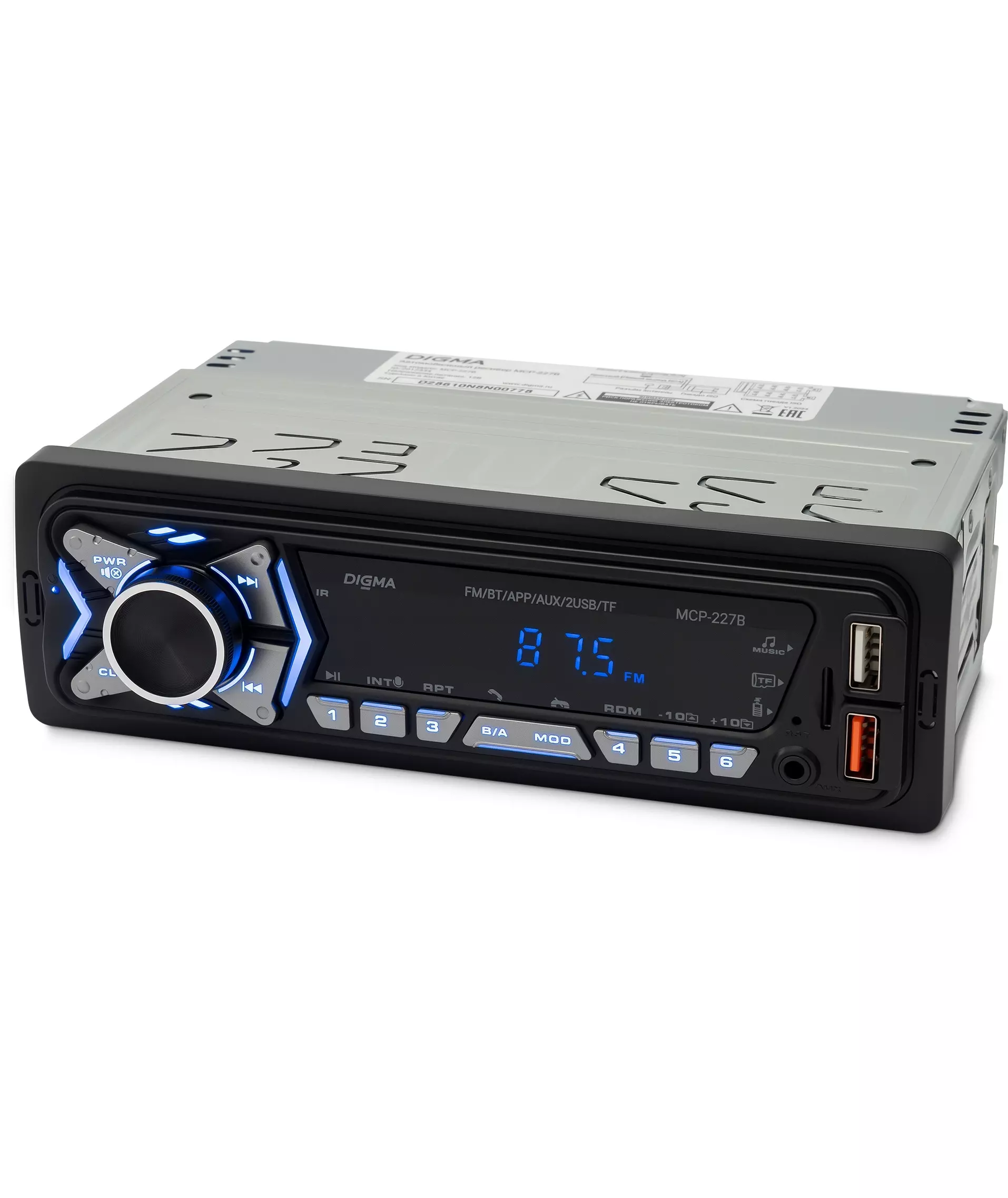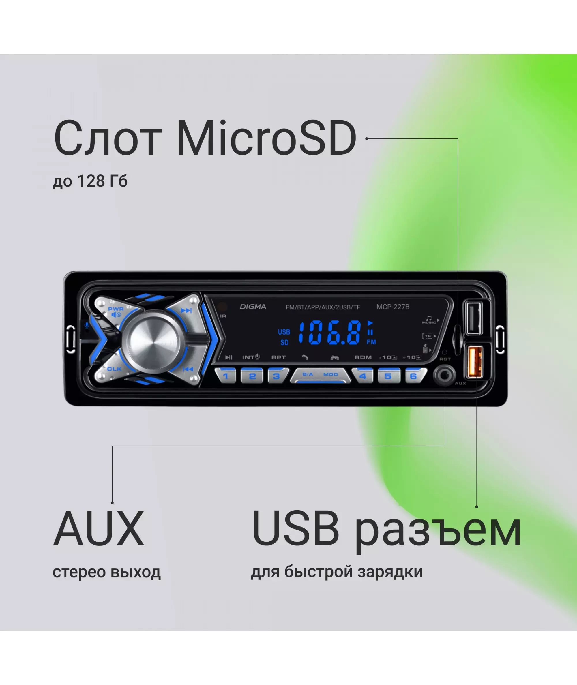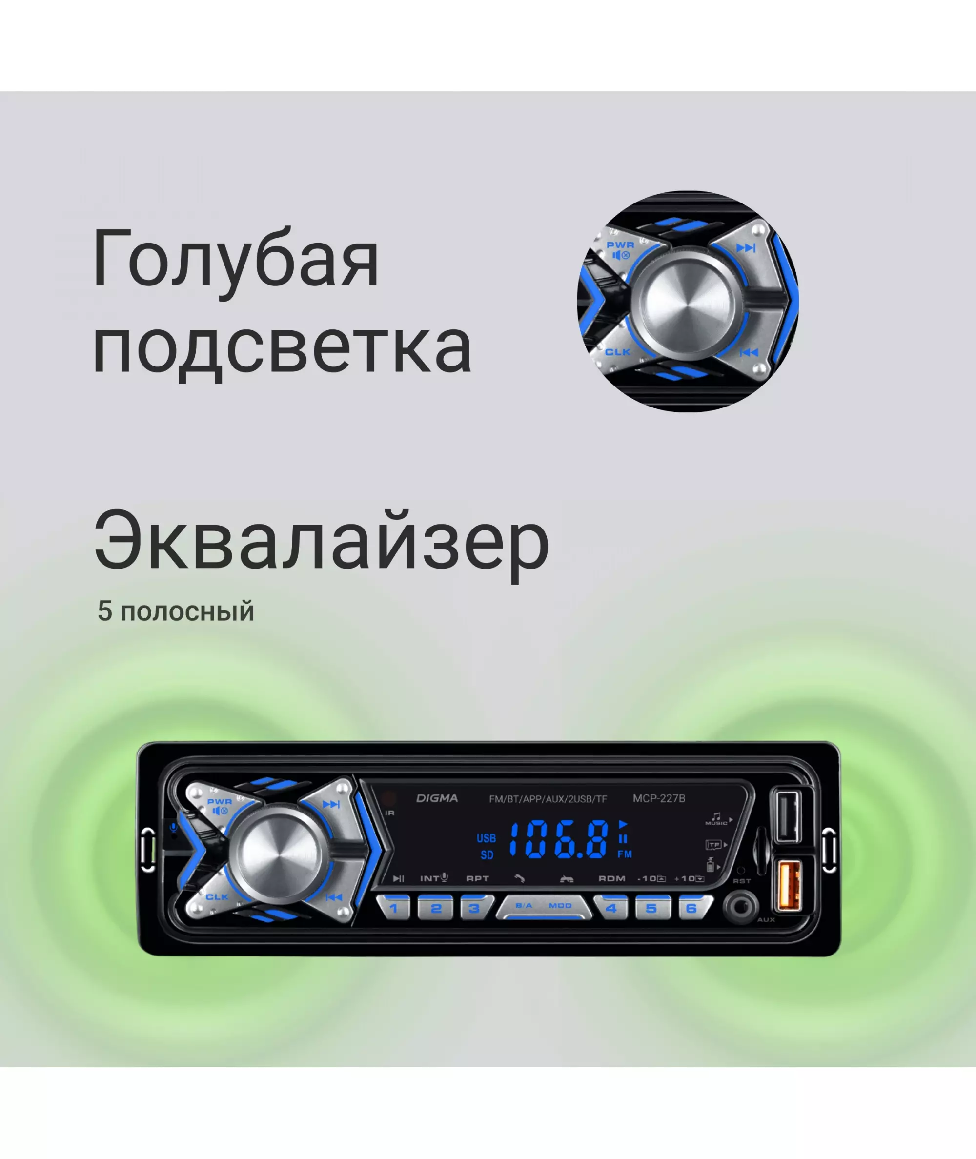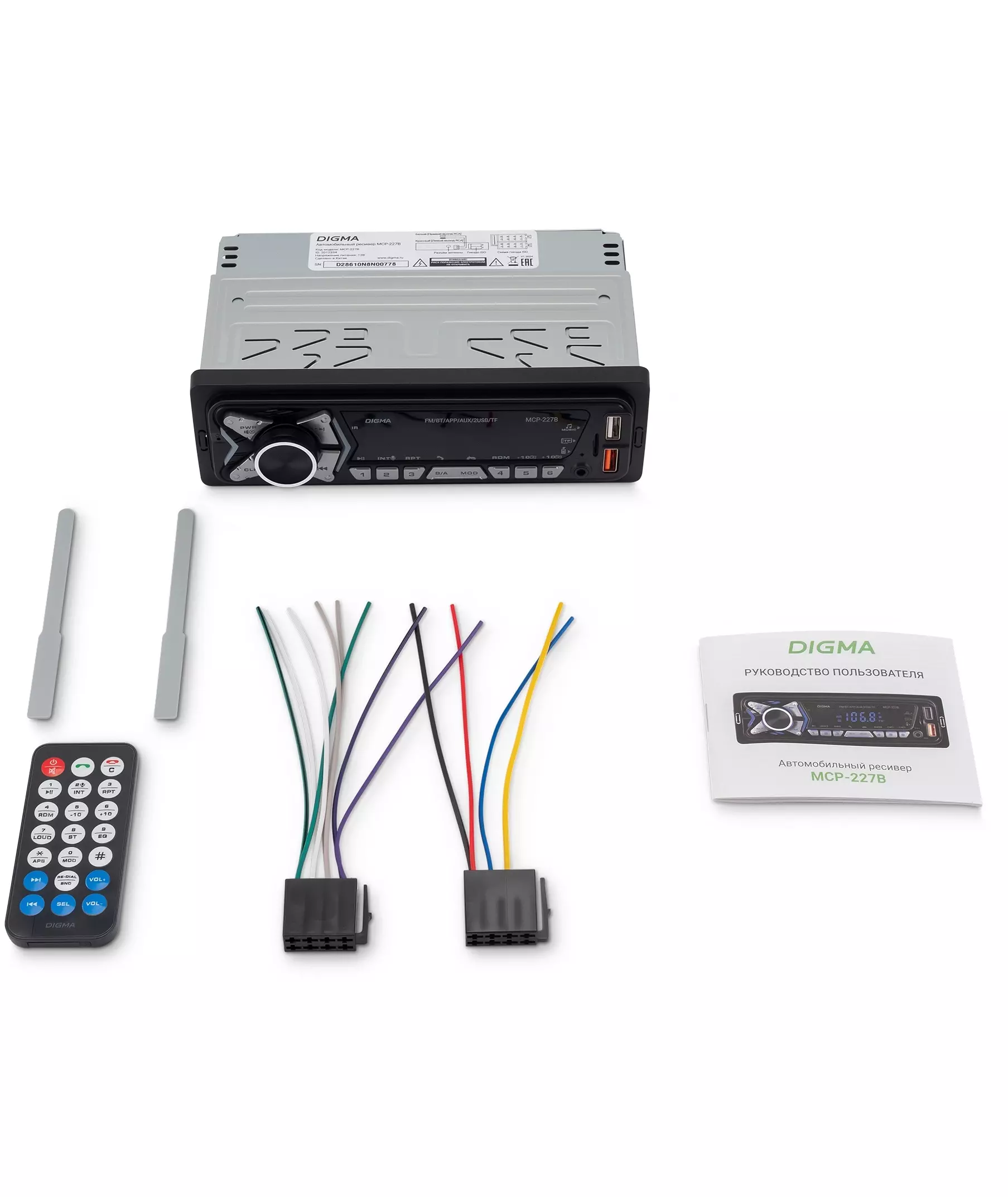 Автомагнитола Digma MCP-227B 1DIN 2x45Вт v5.0 USB 2.0 AUX 2 ПДУ