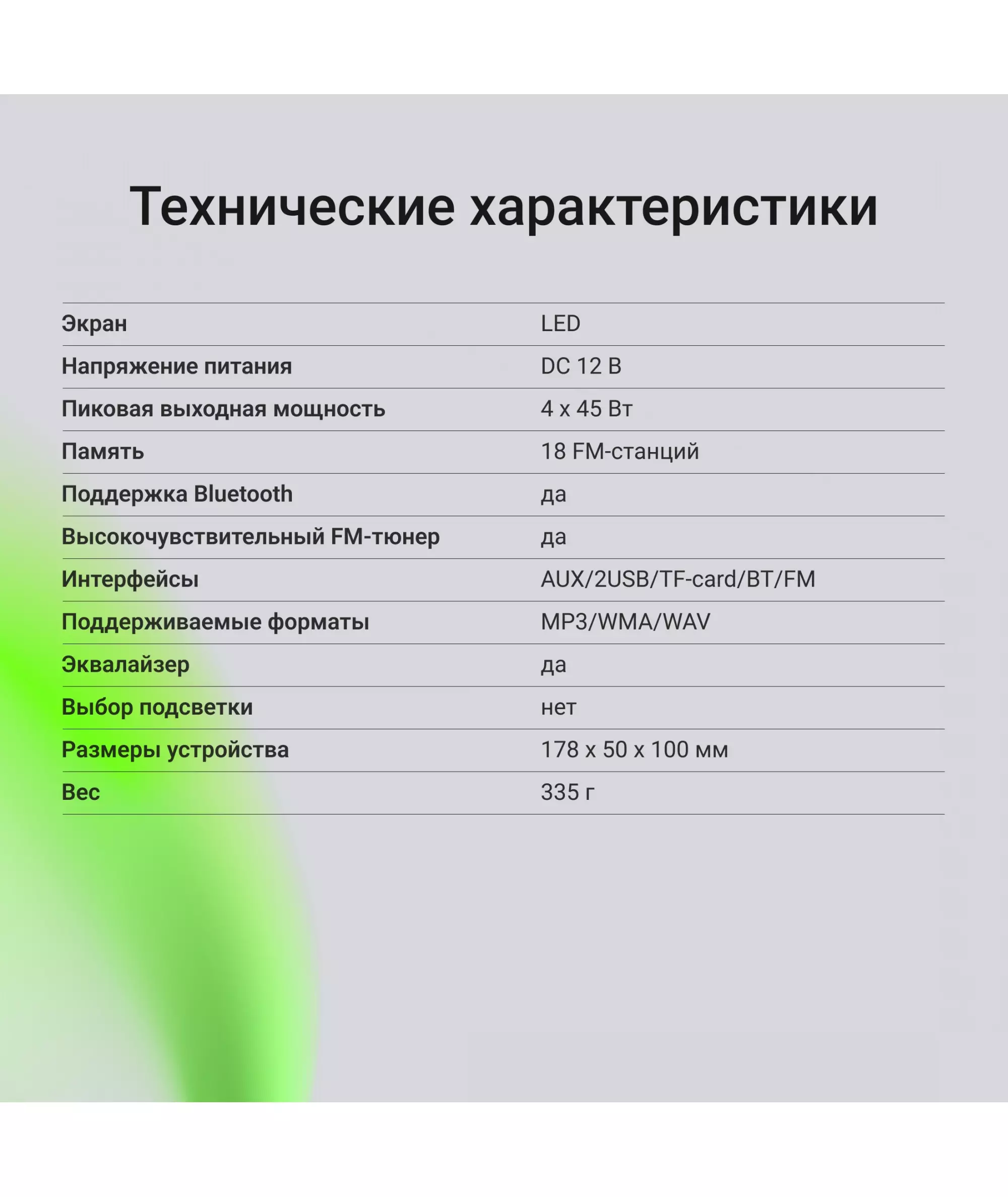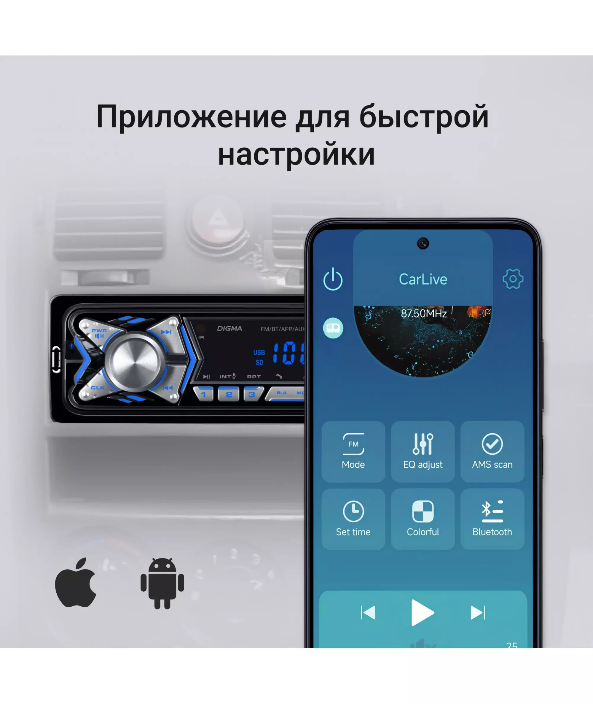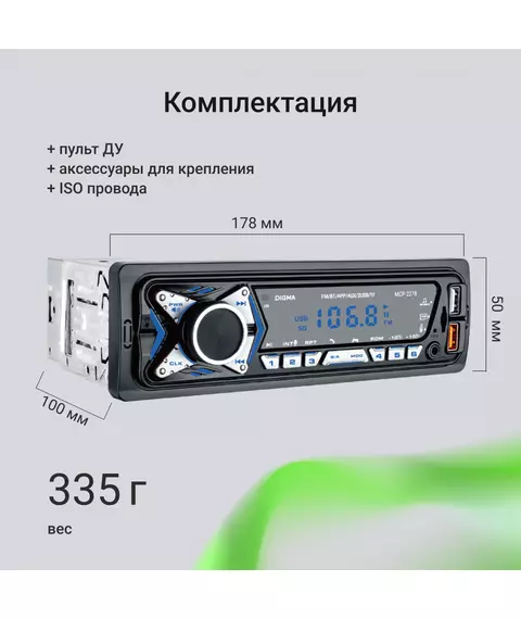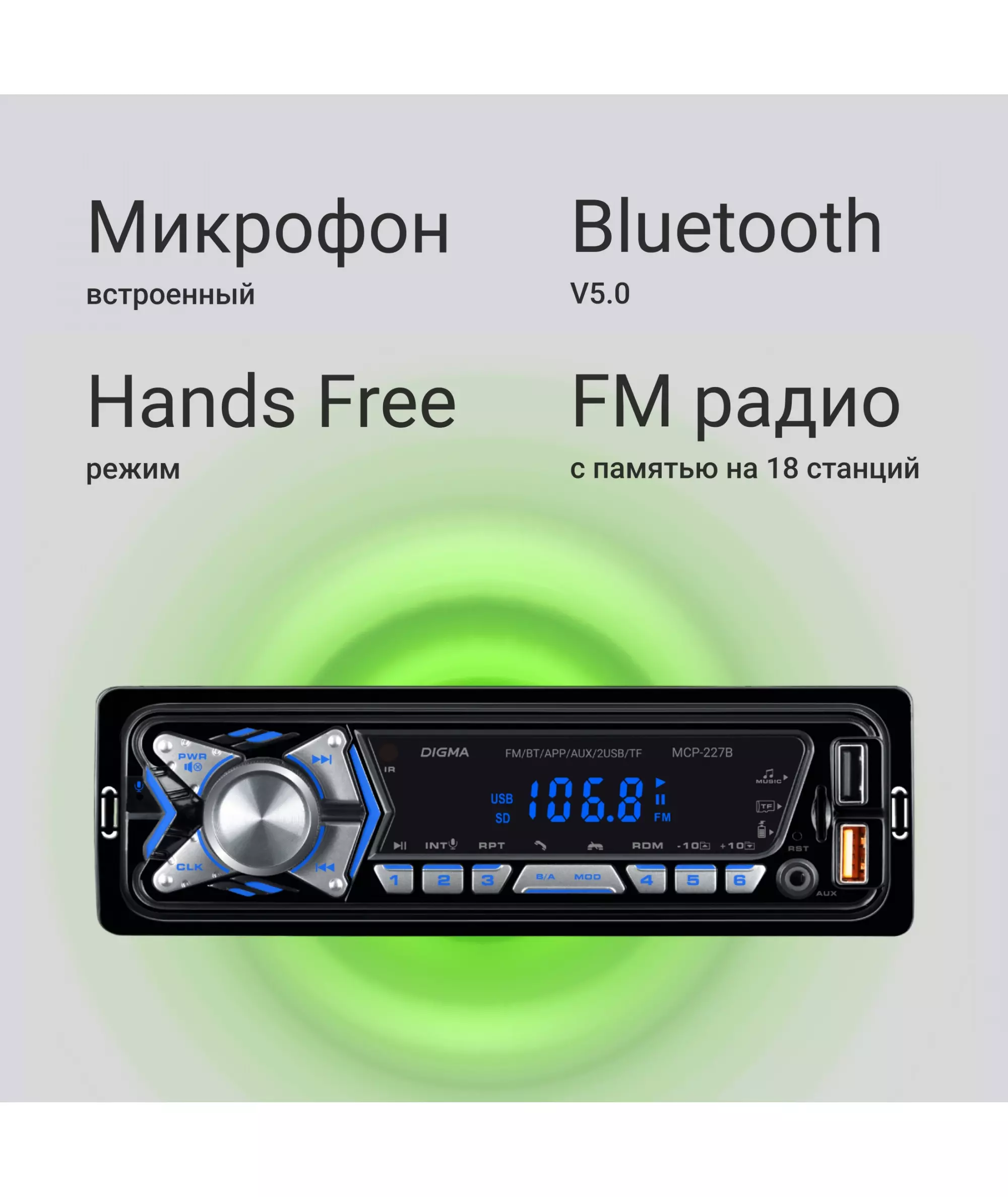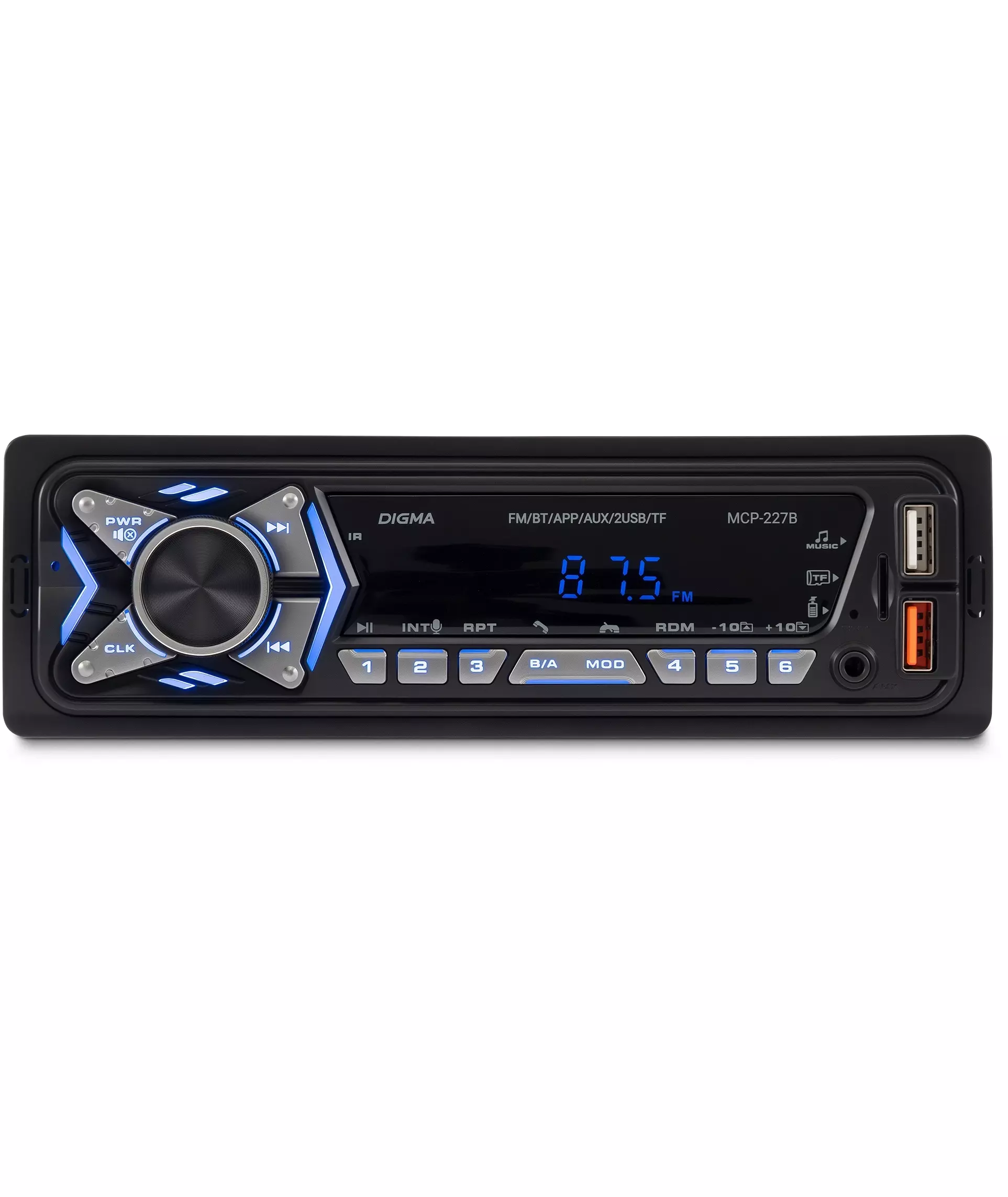 Автомагнитола Digma MCP-227B 1DIN 2x45Вт v5.0 USB 2.0 AUX 2 ПДУ