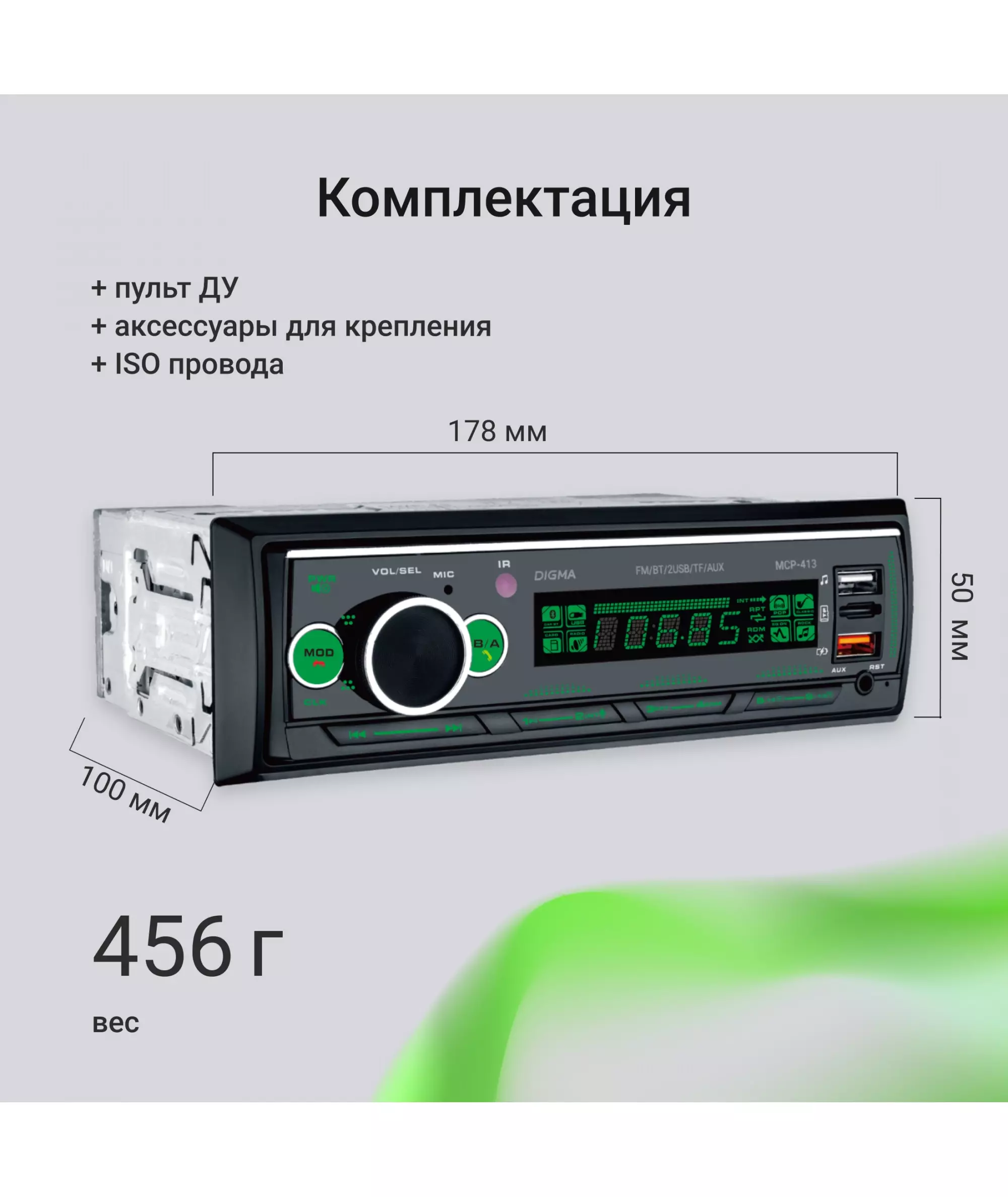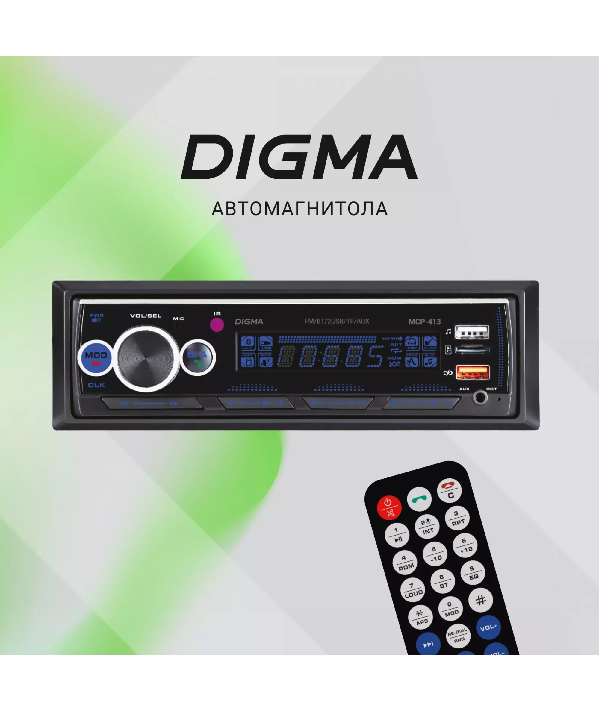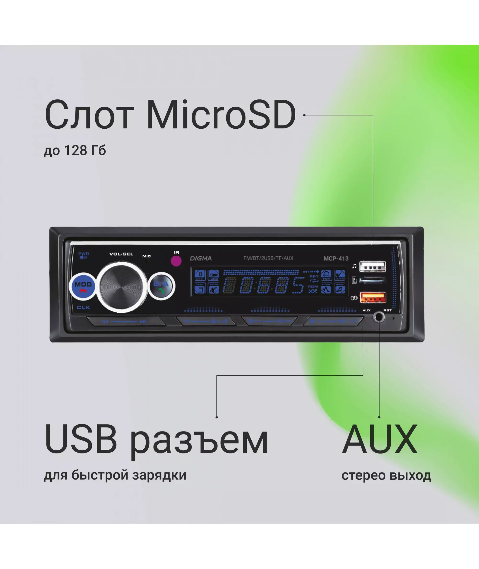 Автомагнитола Digma MCP-413 1DIN 4x45Вт v5.0 USB 2.0 AUX 4 ПДУ