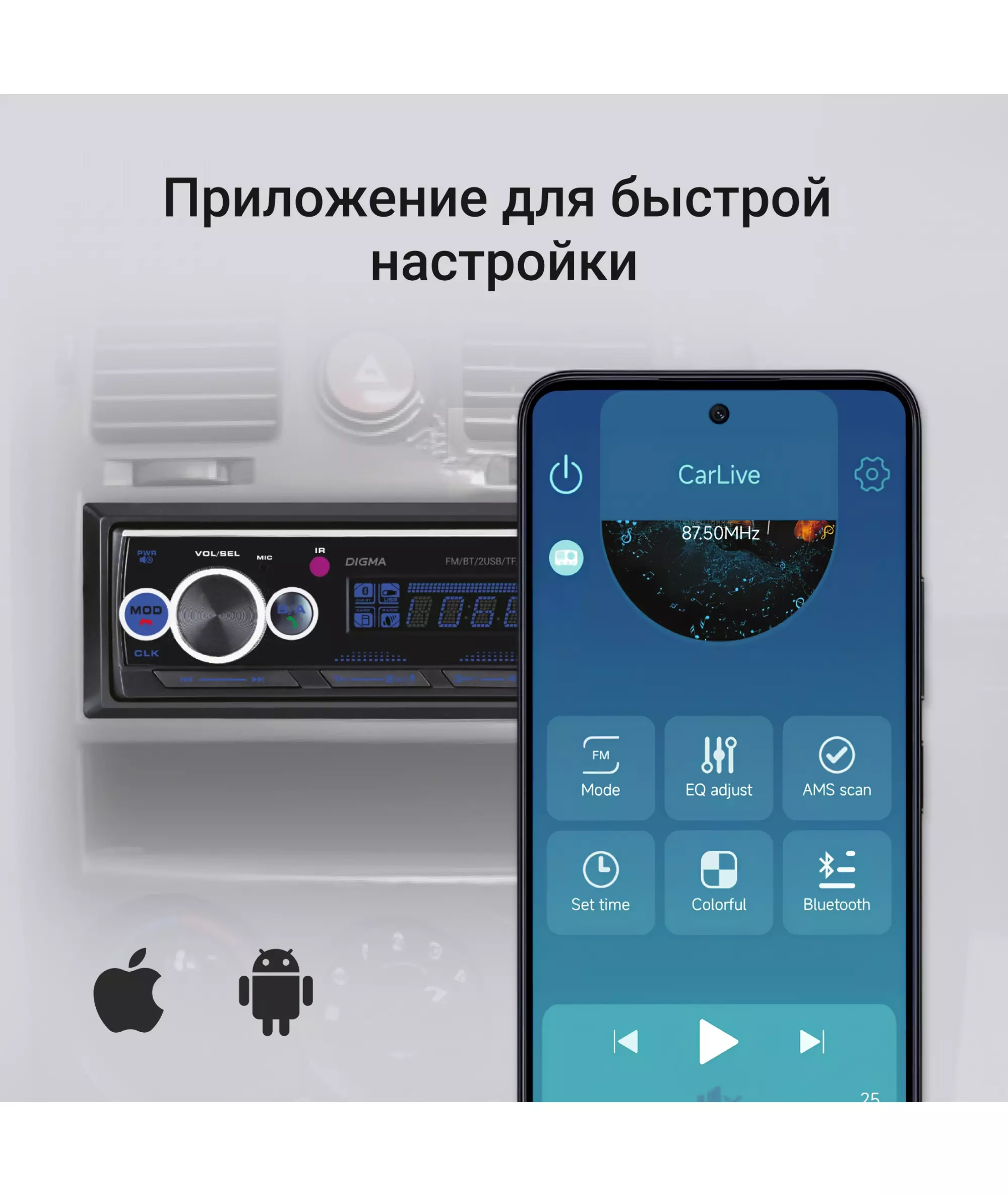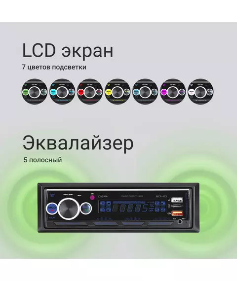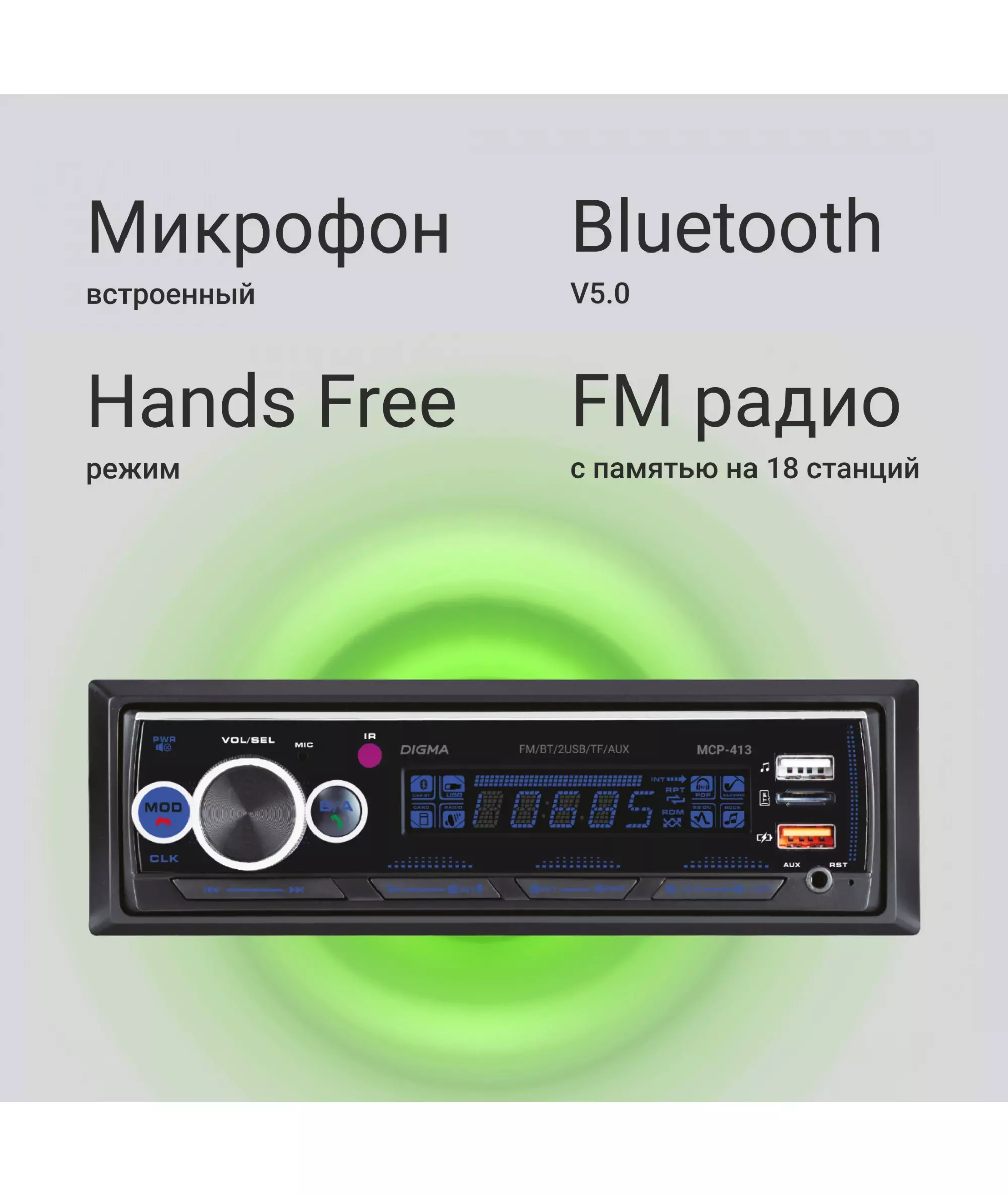 Автомагнитола Digma MCP-413 1DIN 4x45Вт v5.0 USB 2.0 AUX 4 ПДУ