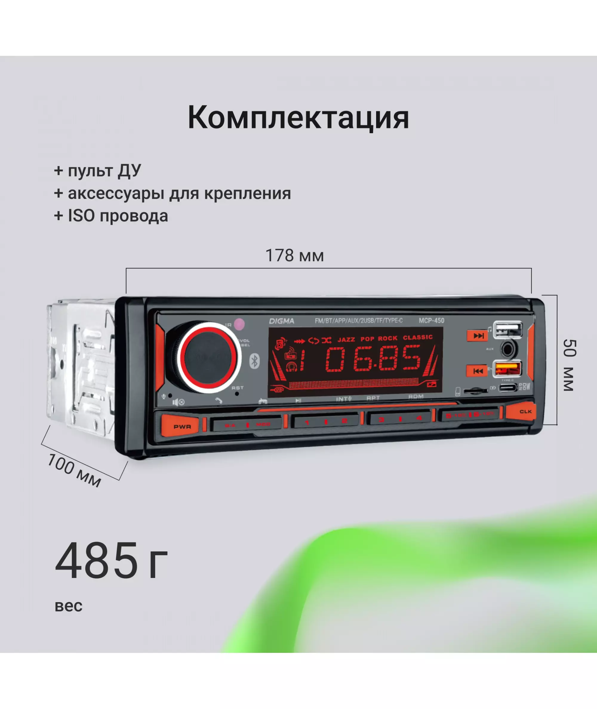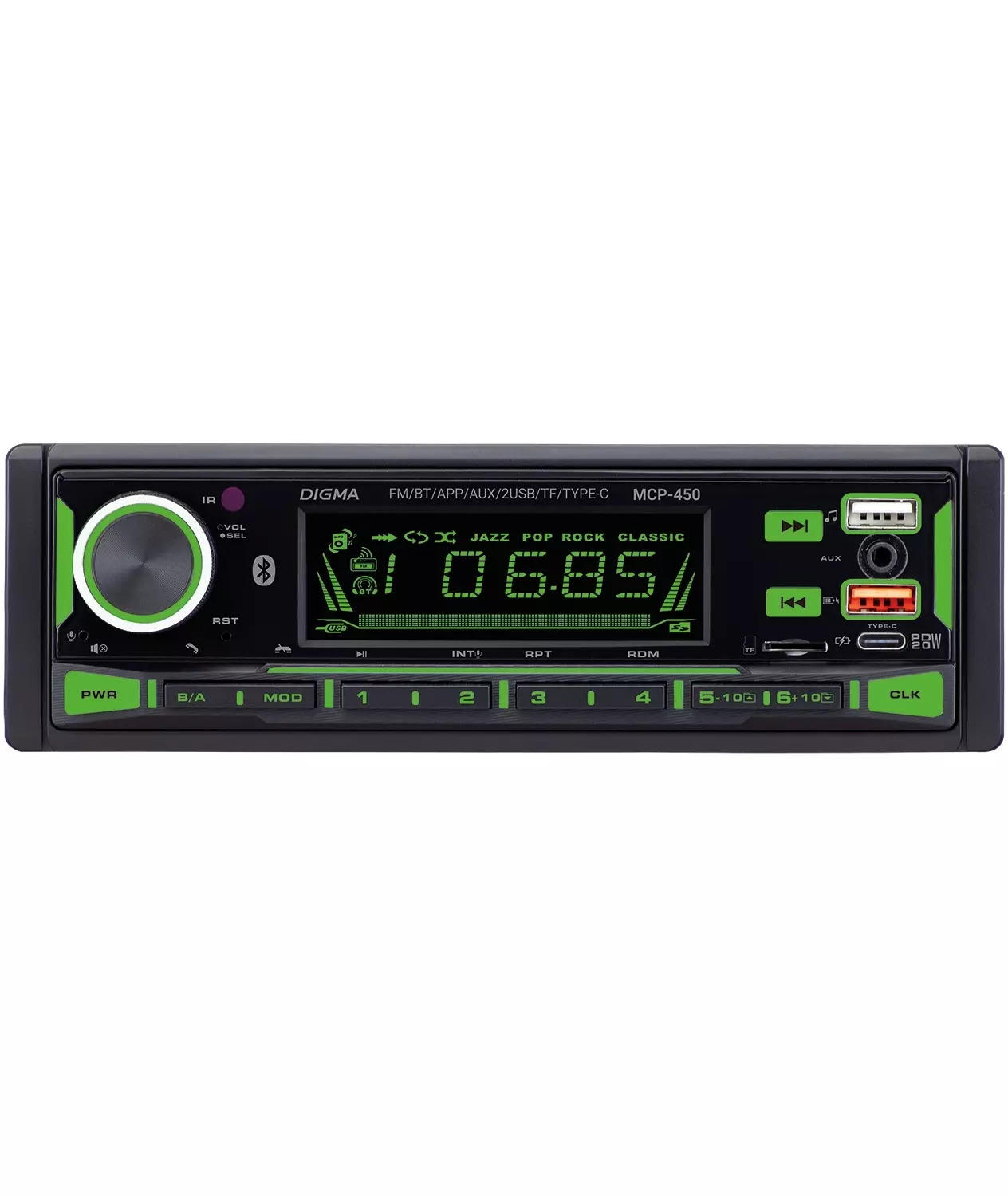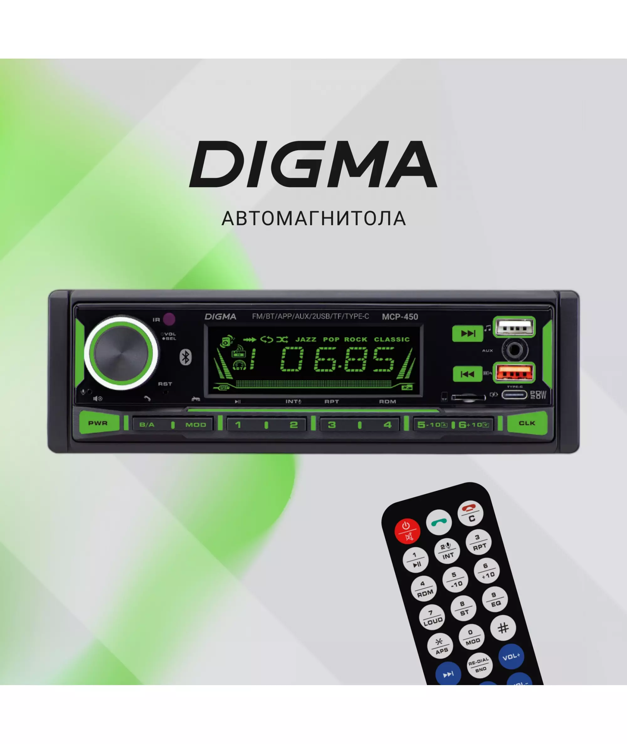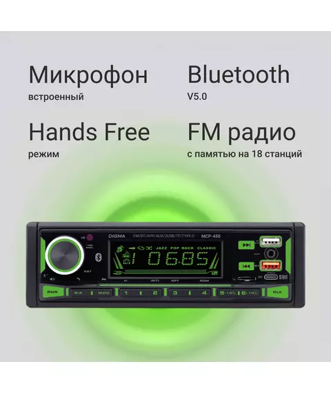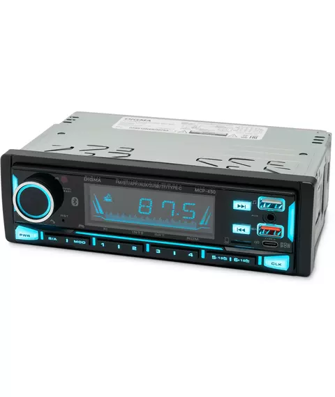 Автомагнитола Digma MCP-450 1DIN 4x45Вт v5.0 USB 2.0 AUX 4 ПДУ