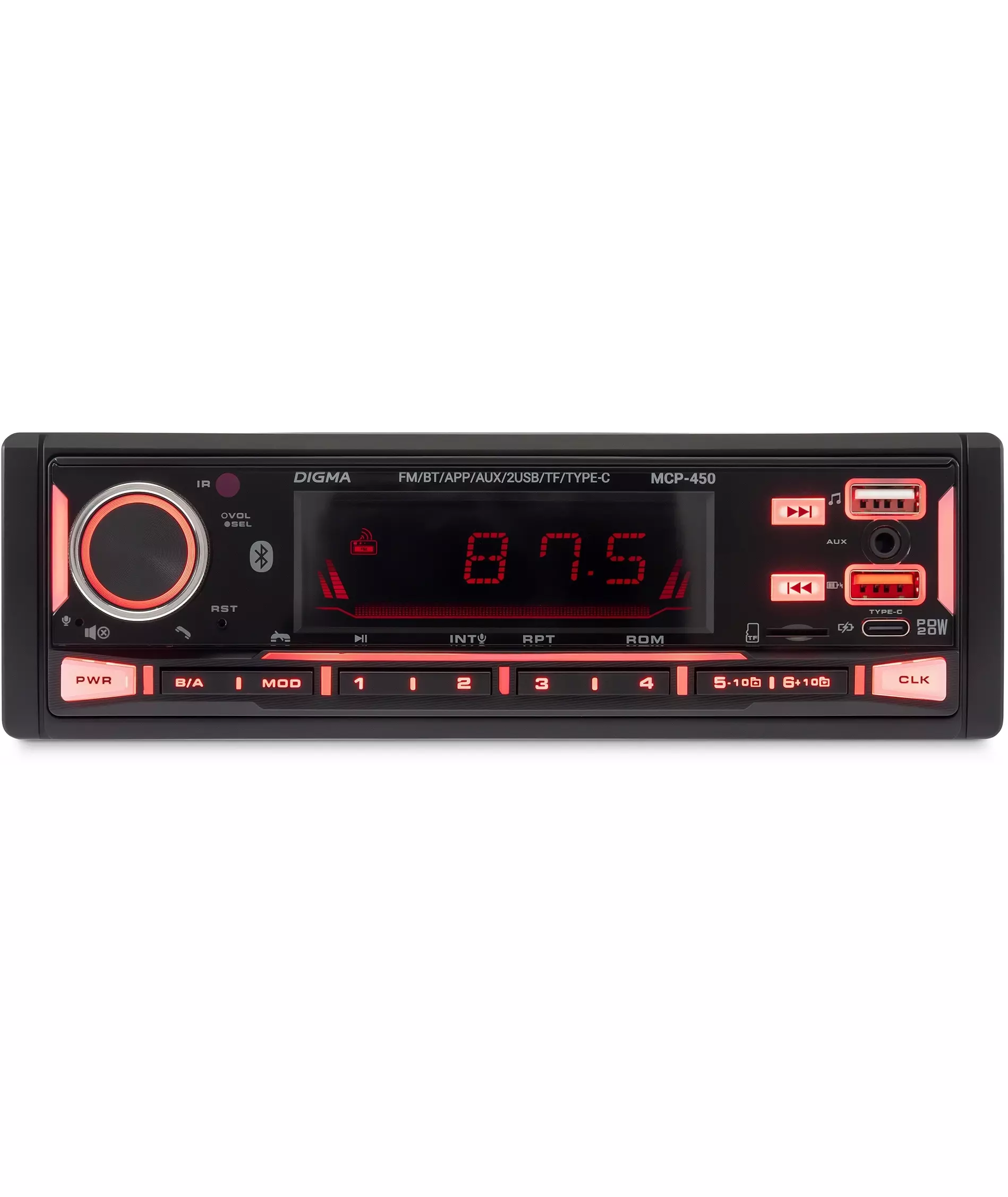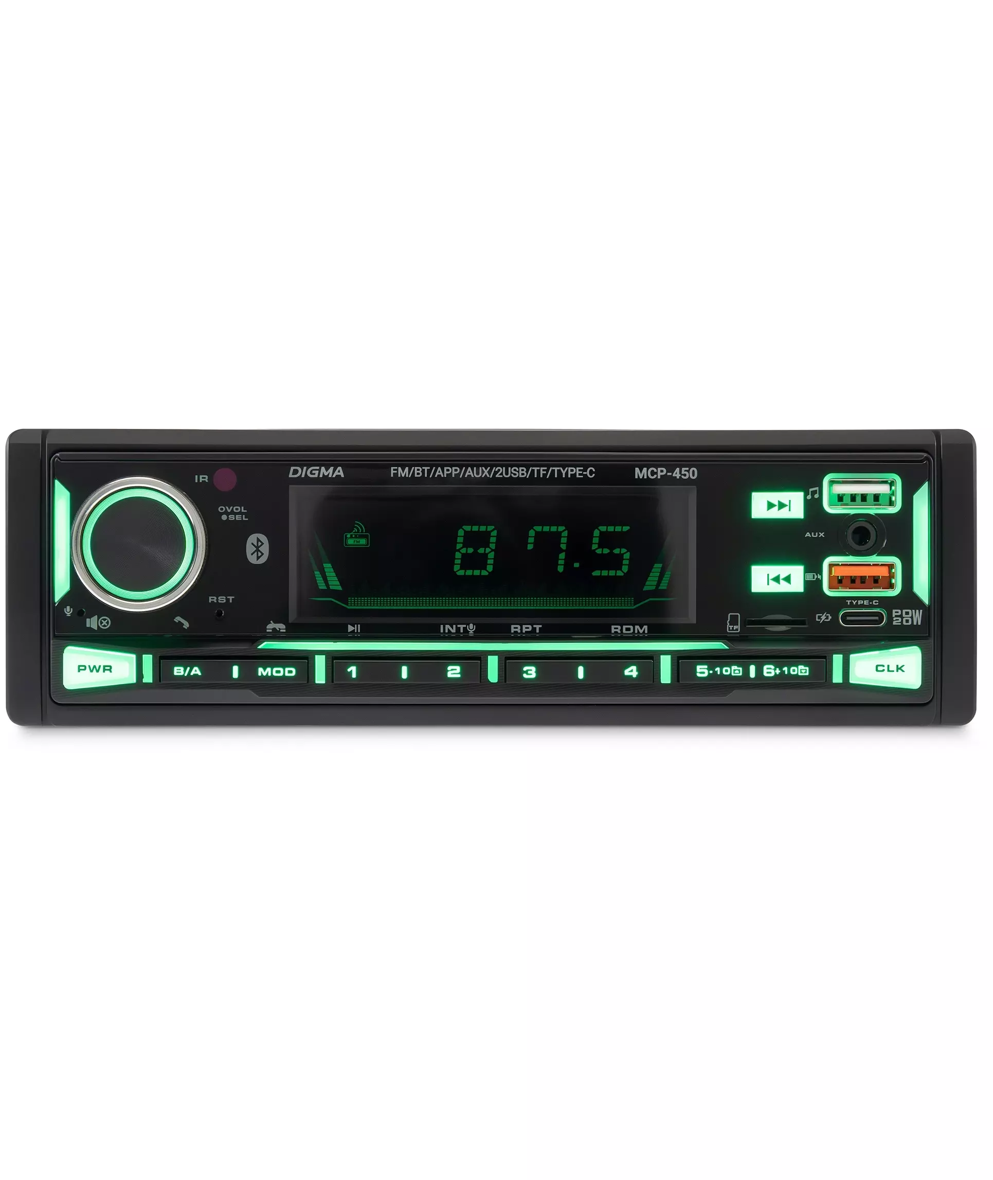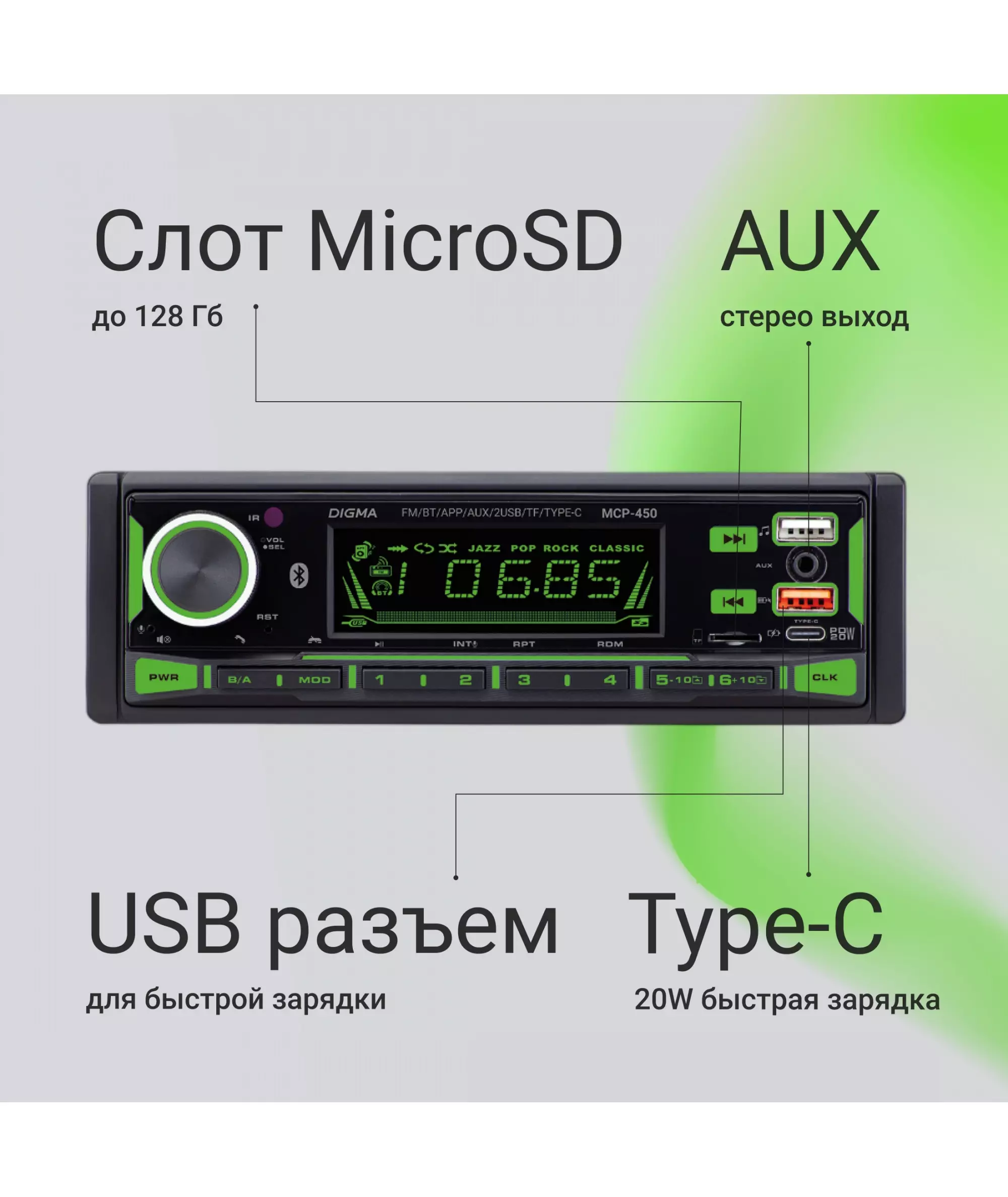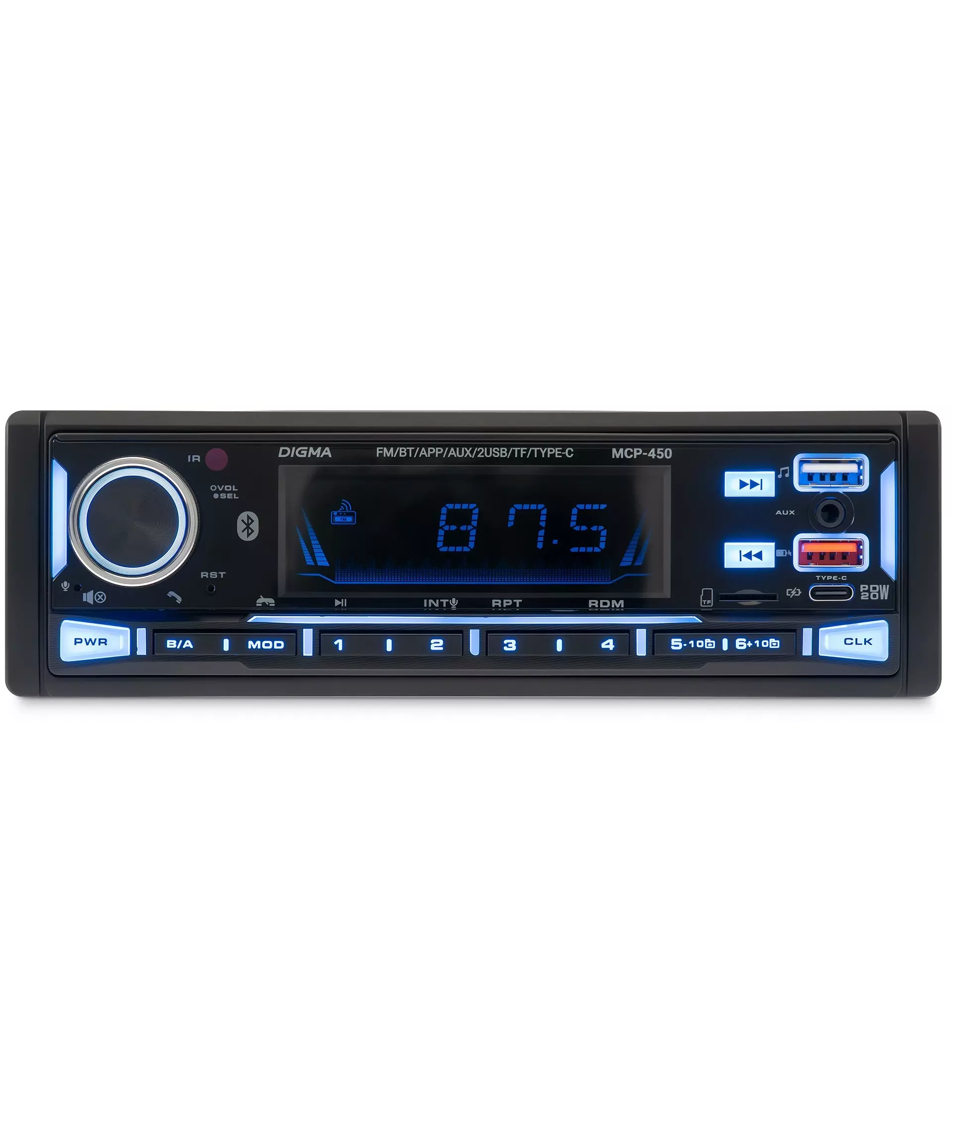 Автомагнитола Digma MCP-450 1DIN 4x45Вт v5.0 USB 2.0 AUX 4 ПДУ