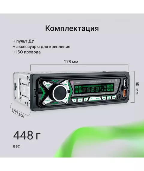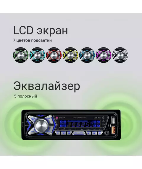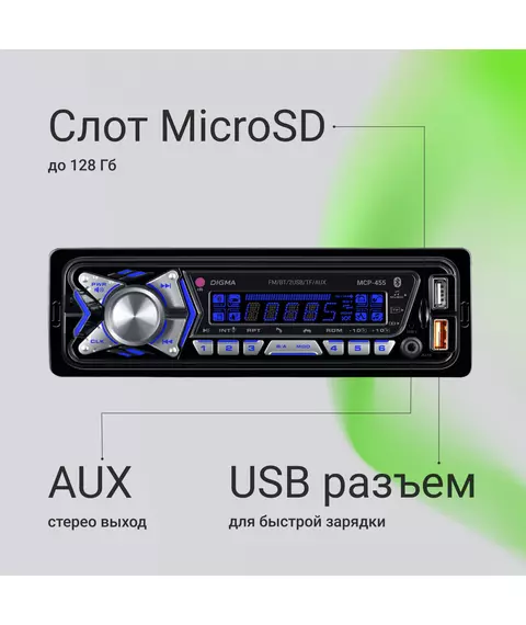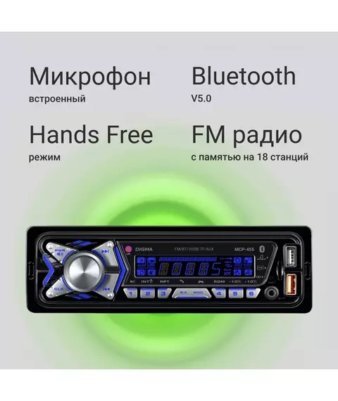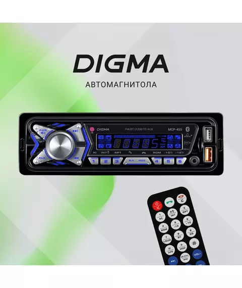 Автомагнитола Digma MCP-455 1DIN 4x50Вт v5.0 USB 2.0 AUX 4 ПДУ