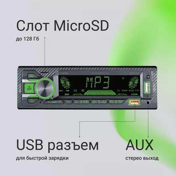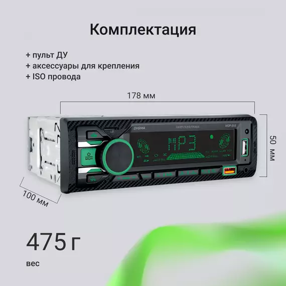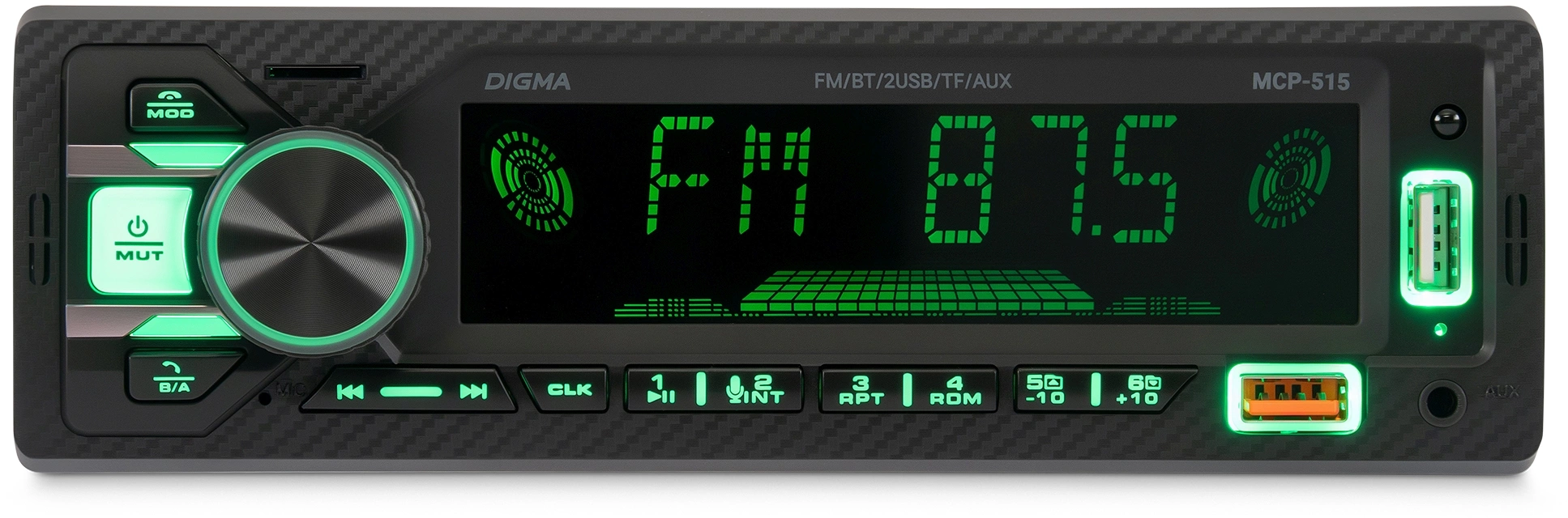 Автомагнитола Digma MCP-515 1DIN 4x45Вт v5.0 USB 2.0 AUX 4 ПДУ
