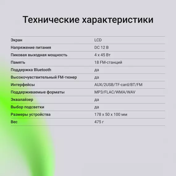 | Поддержка форматов / кодеков | MP3/FLAC/WMA/ |