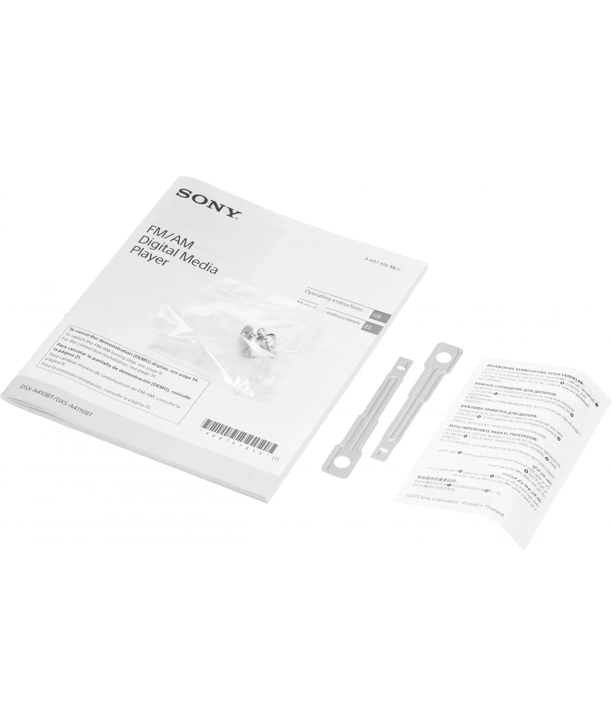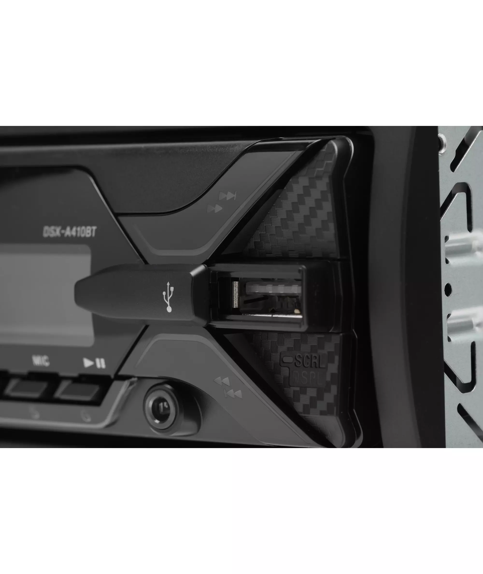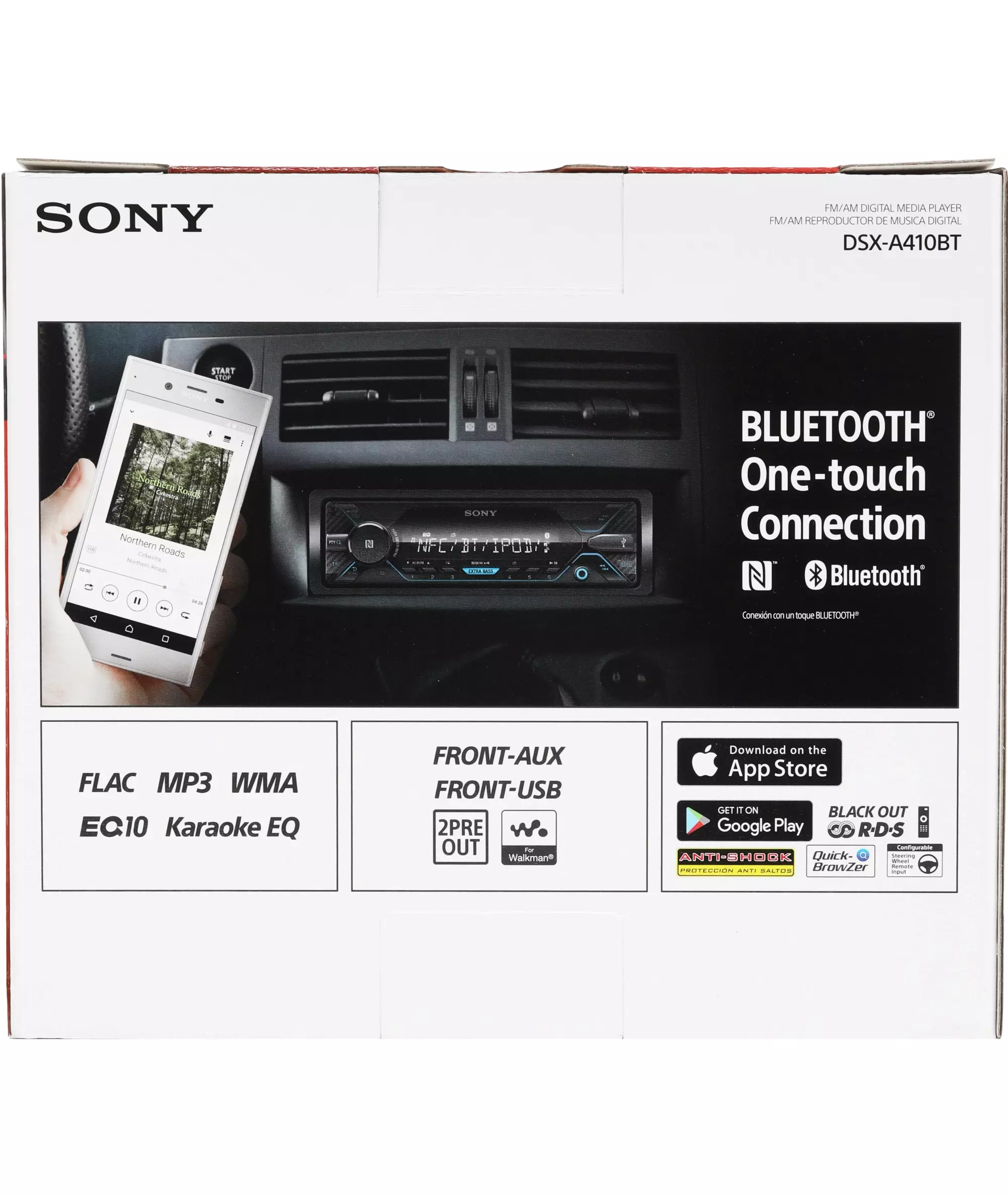 Автопроигрыватель Sony DSX-A410BT с монохромным дисплеем. Возможность синхронизации с устройствами iPhone и iPod.