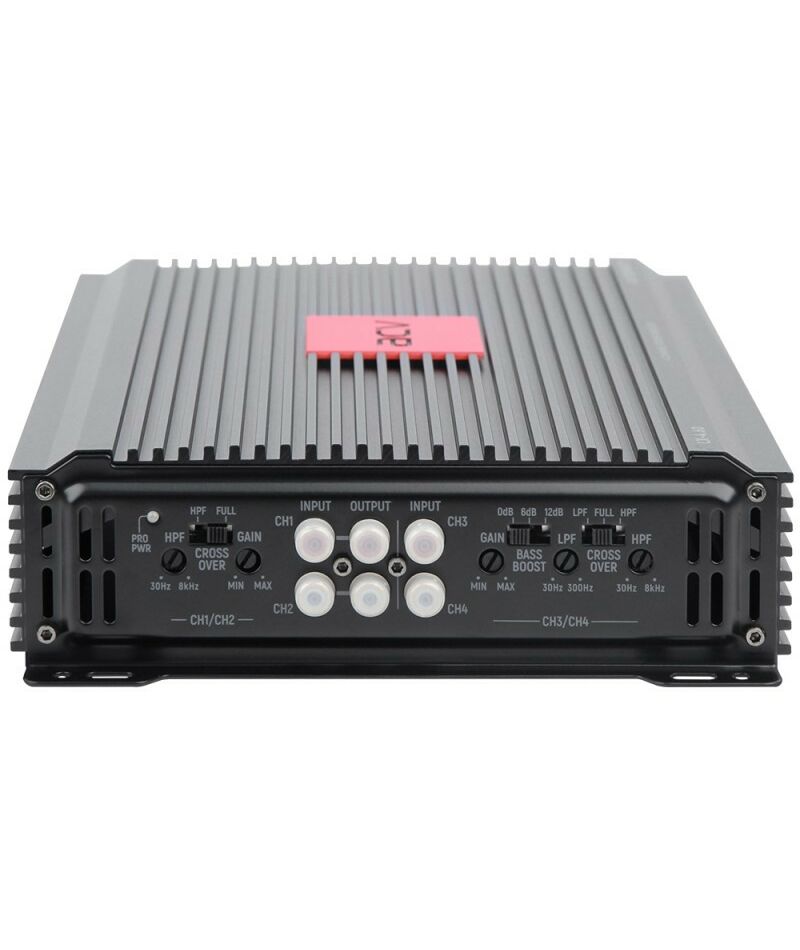 Четырехканальный автомобильный усилитель класса АВ со ступенчатым Bass Boost, и диапазоном 10Гц ~ ЗОкГц. Используется в системах с 4/3/2 конфигурациями, с сопротивлением 2 или 4 Ом. Вы получите высокое качество звука и раскроете потенциал каждого компонента
