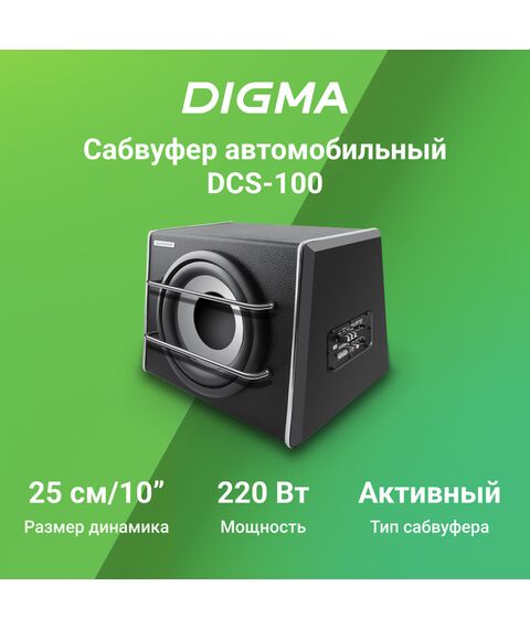 Сабвуфер автомобильный Digma DCS-100 220Вт, активный (25см/10")