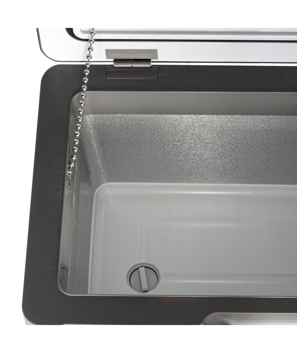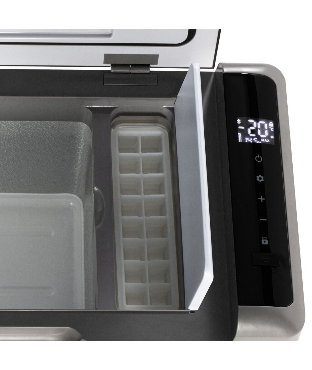 - Высокопроизводительный компрессор у данной модели снабжен системой защиты от разгерметизации и имеет напряжение 12/24 В. Благодаря оптимизированному программному обеспечению и регулируемой скорости вращения, Вы можете эффективно поддерживать нужную температуру продуктов. Так же, холодильник обладает полностью герметичной системой охлаждения с защищённым испарителем.