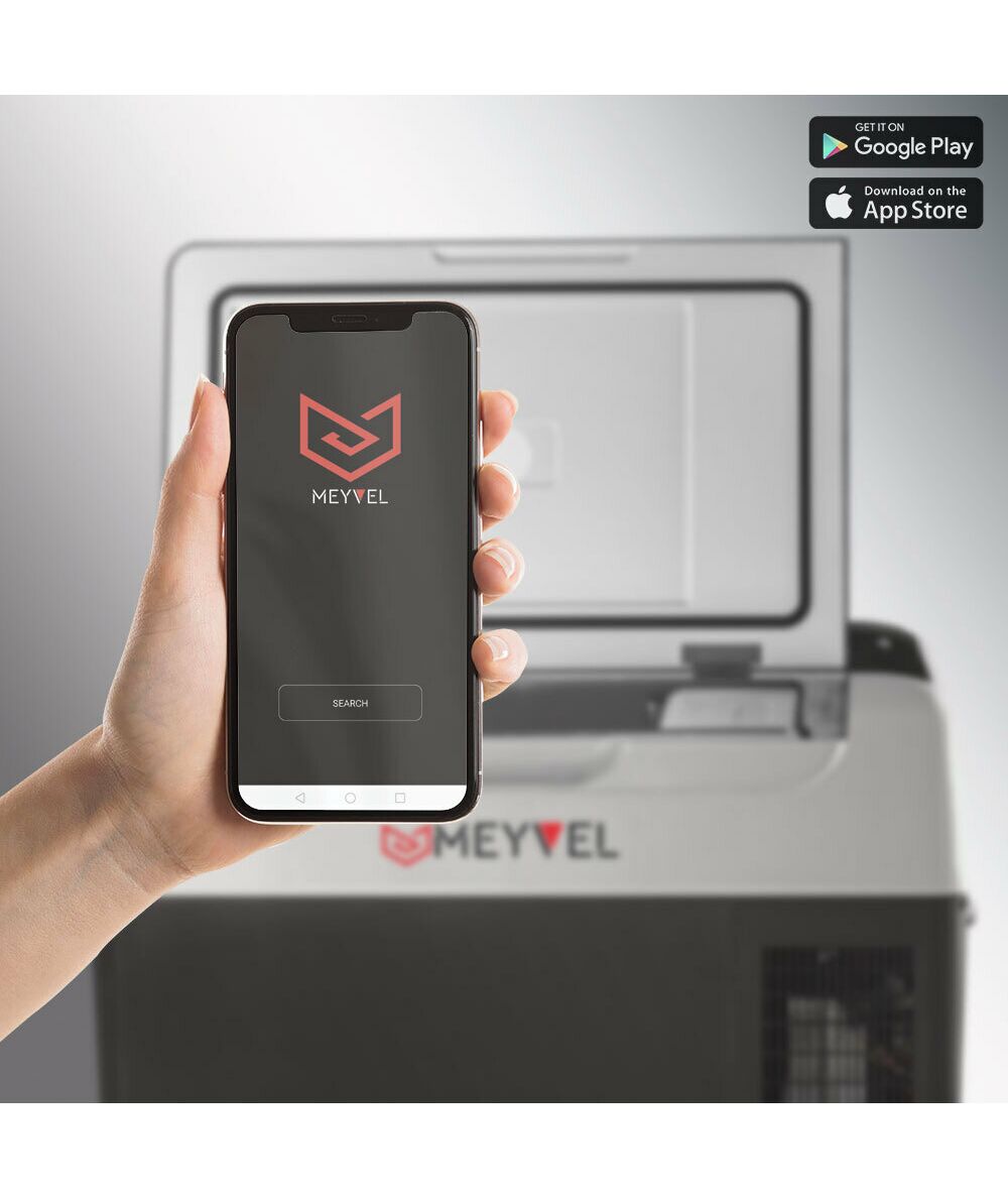 - Дизайнеры и инженеры Meyvel позаботились о Вашем комфорте и разработали мобильное приложение «MEYVEL CAR FRIDGE», благодаря которому Вы можете управлять устройством всего лишь одним касанием. Включайте и отключайте устройство, меняйте и настраивайте температурный режим прямо в дороге. Теперь, когда управление авто холодильником стало простым и понятным, Вам и Вашим близким остается лишь наслаждаться путешествием.