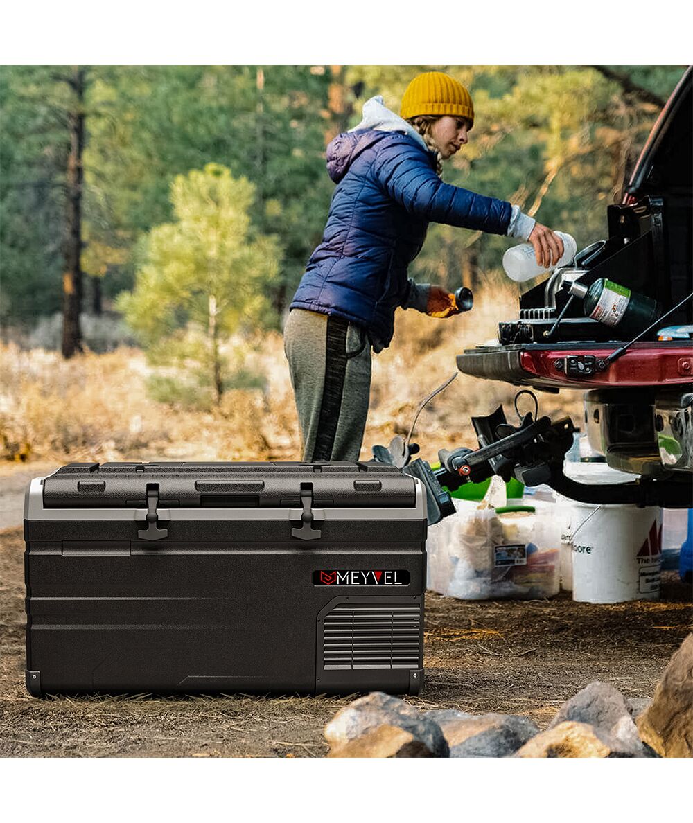 - Автомобильный холодильник Meyvel AF-H80 имеет большую вместимость и отлично подойдет как для совместных путешествий в кругу семьи, так и для профессиональных охотников и рыболовов.
