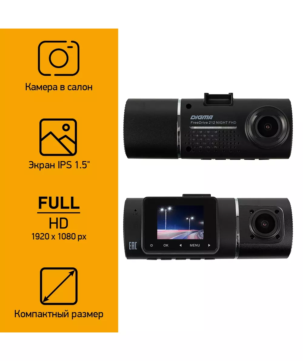 Видеорегистратор Digma FreeDrive 212 NIGHT черный 2Mpix 1080x1920 1080p 160гр. JL5601 [FD212N]