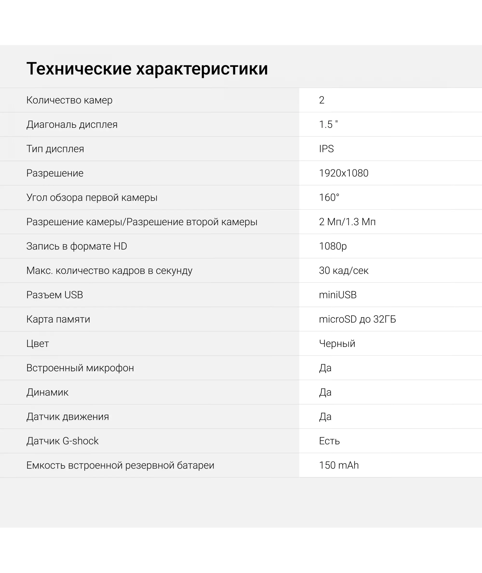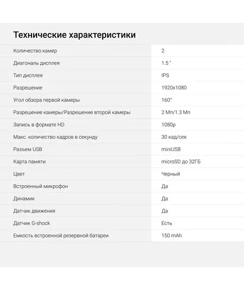 | Угол обзора первой камеры | 160 ° |