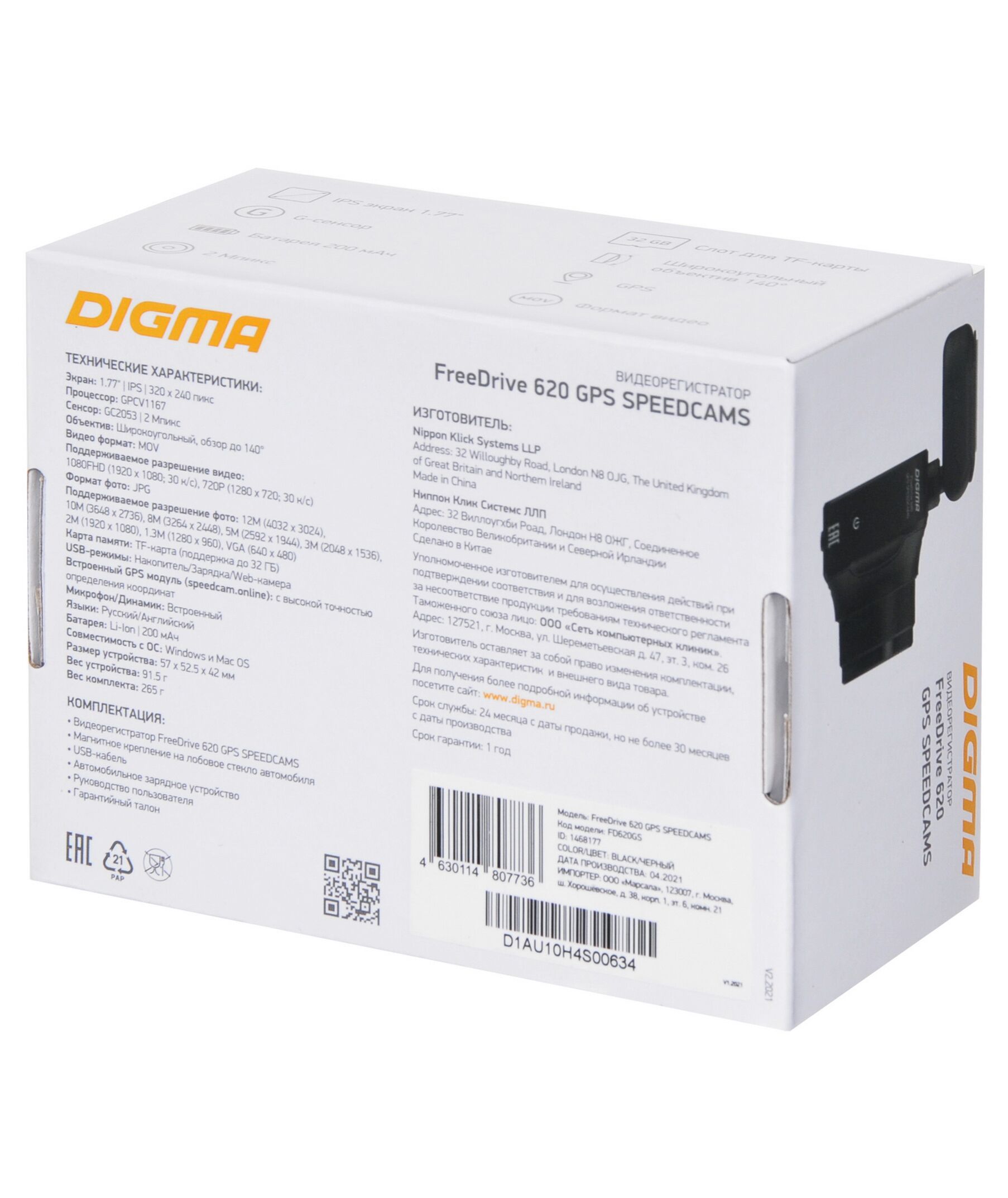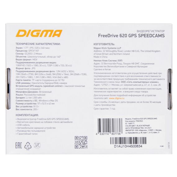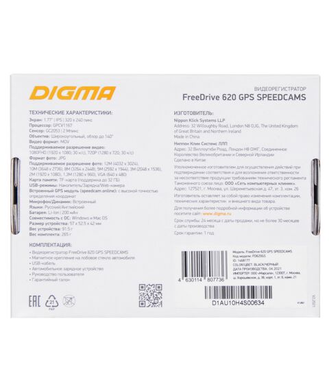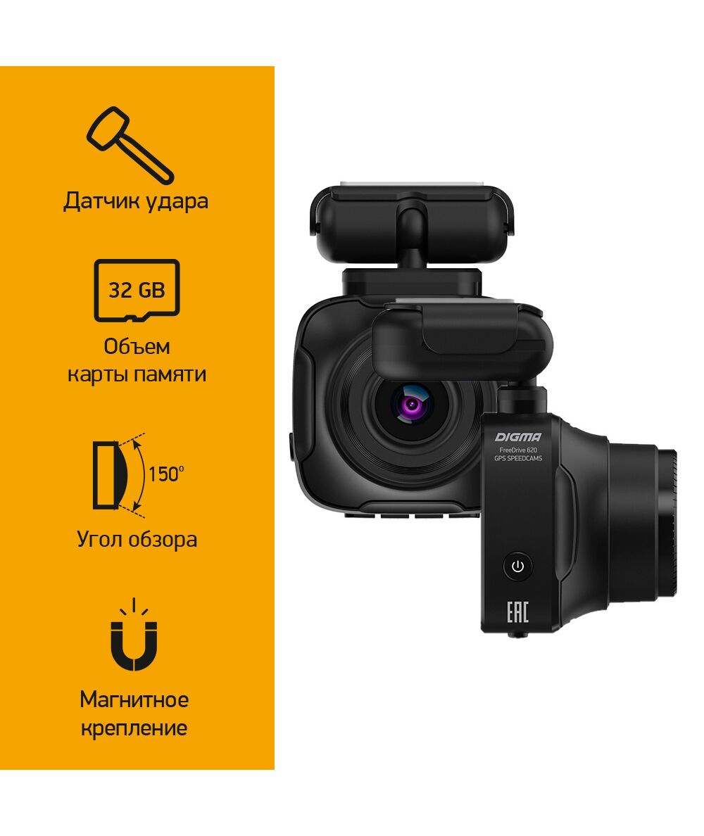 Видеорегистратор Digma FreeDrive 620 GPS Speedcams GPCV1167 1080p, 1080x1920, черный, 2Mpix, 150гр., GPS [FD620GS]