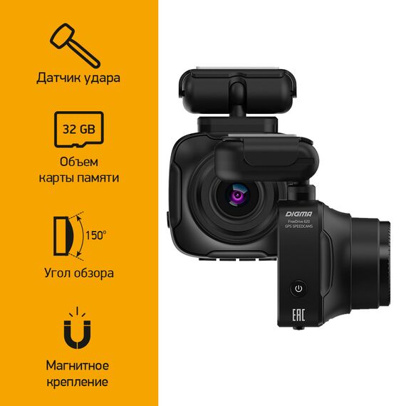 - Особенности: Магнитное крепление, встроенная обновляемая база камер Speedcam