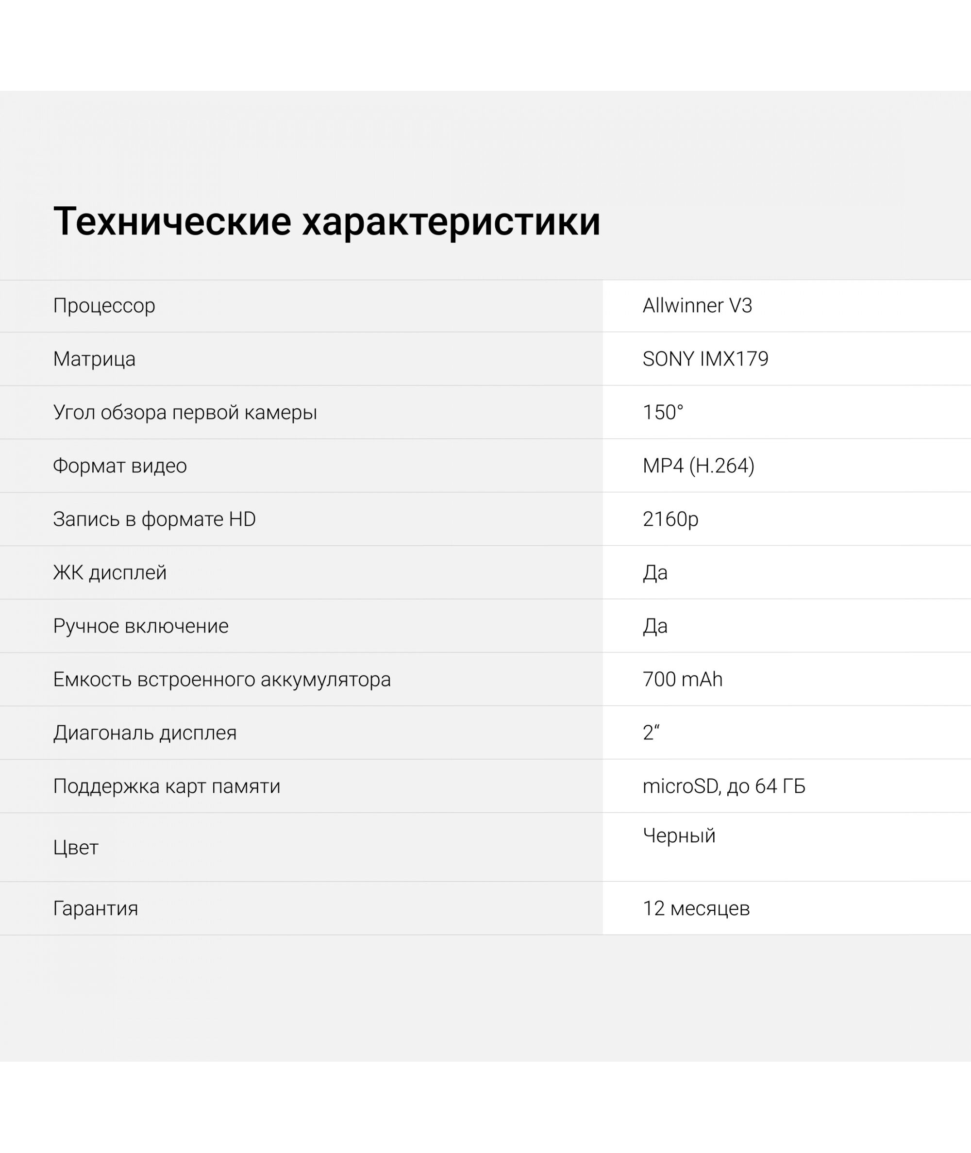 | Угол обзора первой камеры | 150 ° |