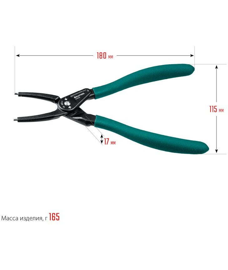 Съемник стопорных колец KRAFTOOL 180 мм прямые губки, внутренний [22812-1]