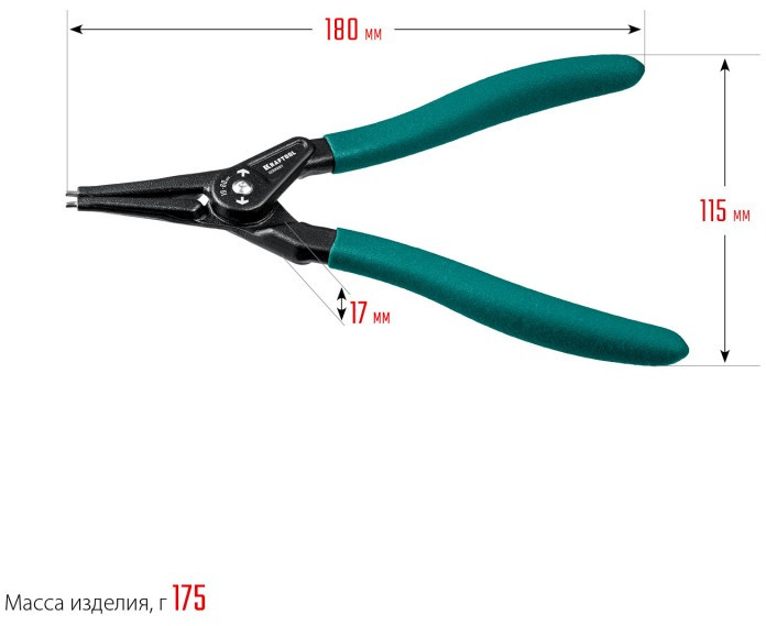 Съемник стопорных колец KRAFTOOL 180 мм прямые губки, внешний [22812-3]