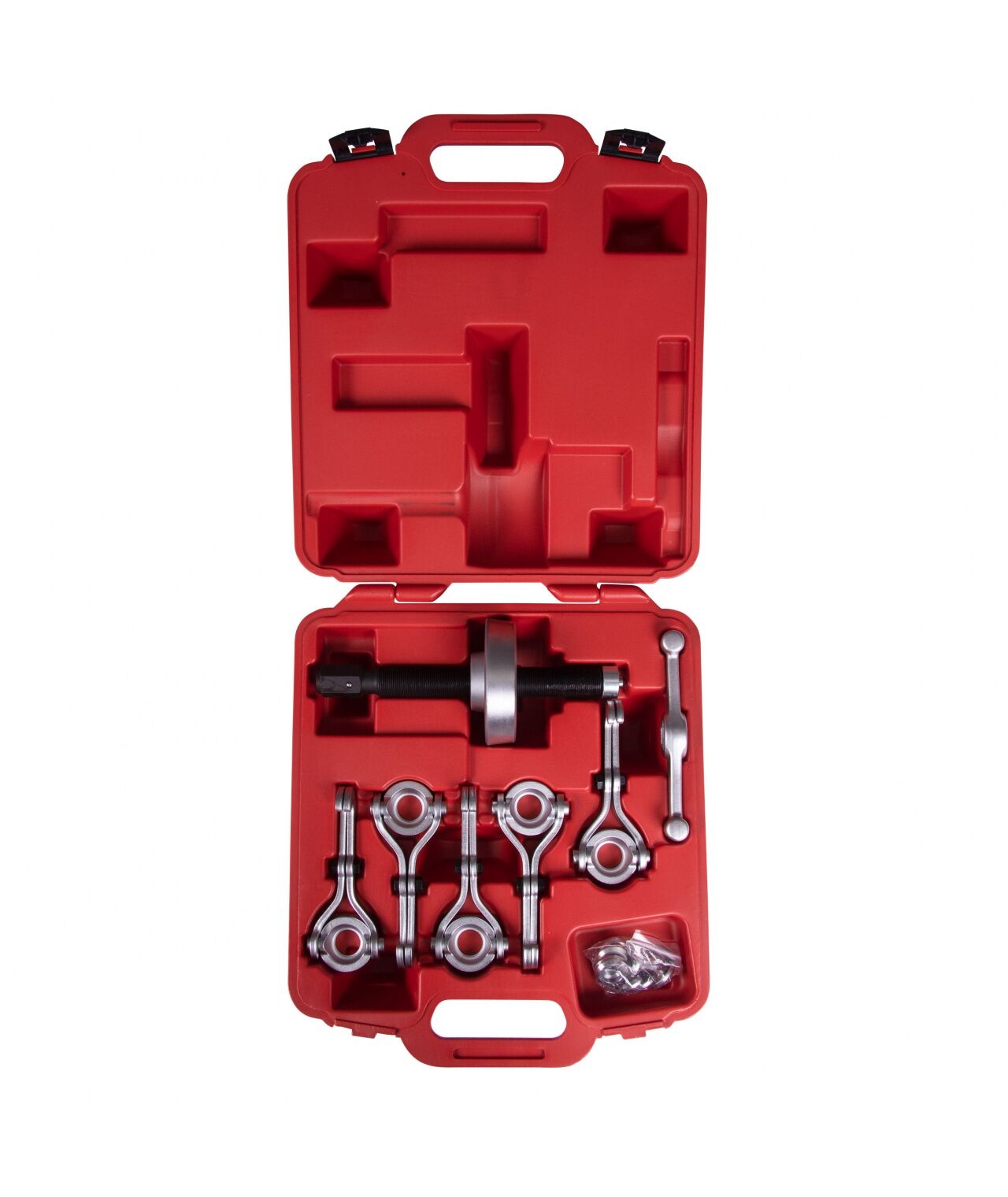 • Универсальность конструкции позволяет применять набор для демонтажа ступиц с любым количеством колёсного крепежа, расположенного в пределах 250 мм в диаметре.