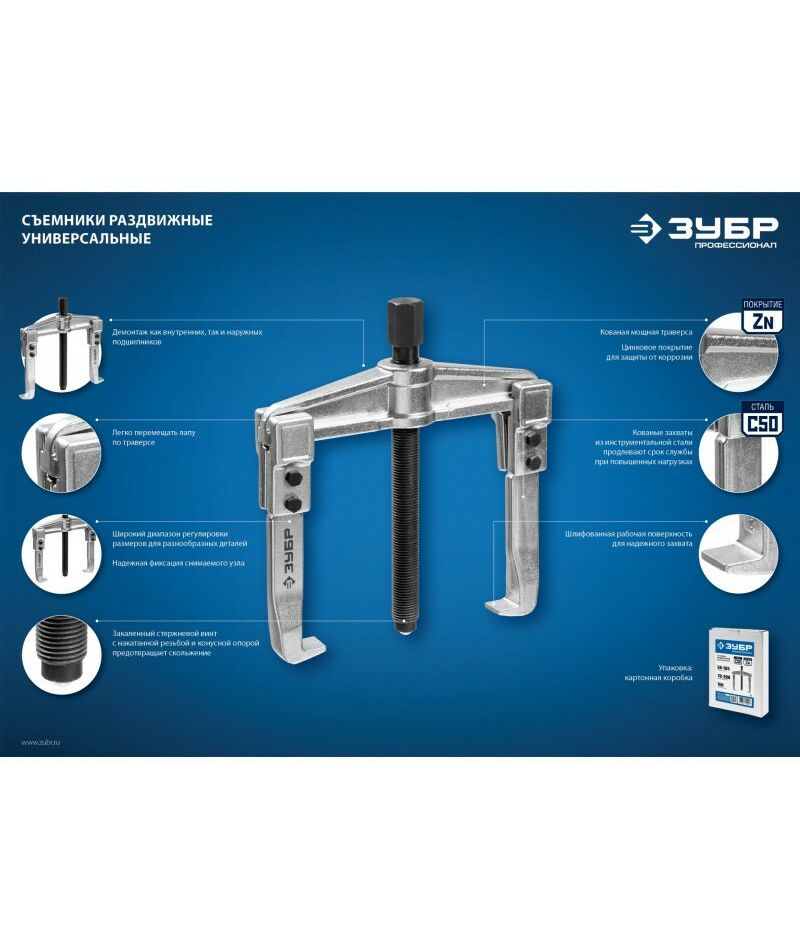 Съемник раздвижной 3-захватный Зубр Профессионал 150 мм [43312-180-150]