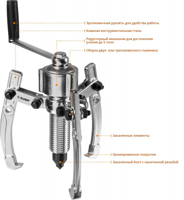 Съемник редукторный универсальный Зубр Профессионал 43301-5 5 т [43301-5]