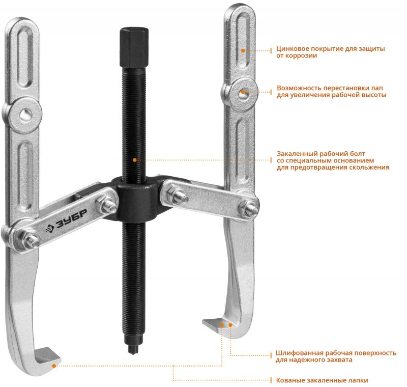 Съемник шарнирный 2-захватный с удлиненными захватами Зубр Профессионал 43316-275 275 мм [43316-275]