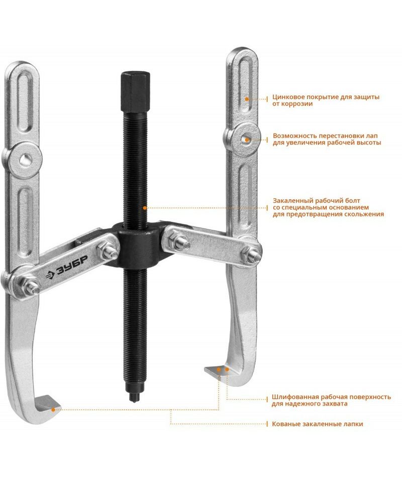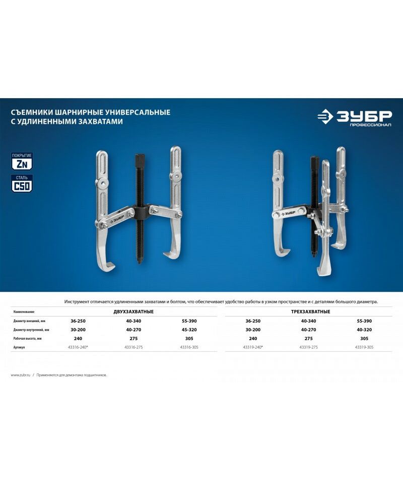 Съемник шарнирный 2-захватный Зубр Профессионал 240 мм с удлиненными захватами [43316-240]