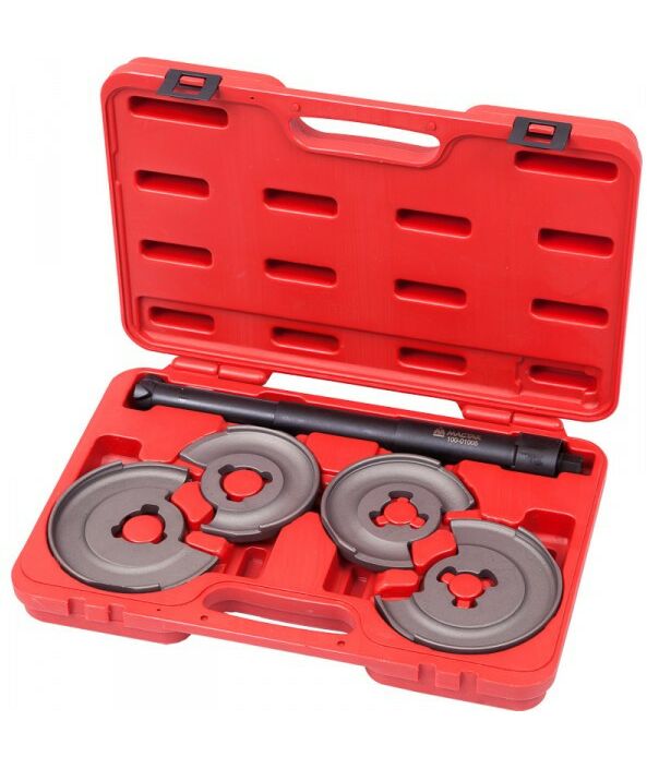 Стяжка амортизаторных пружин МАСТАК 100-01005C центральная, кованая, дисковые держатели, кейс, 5 предметов