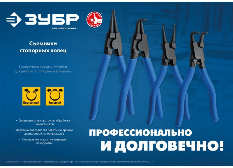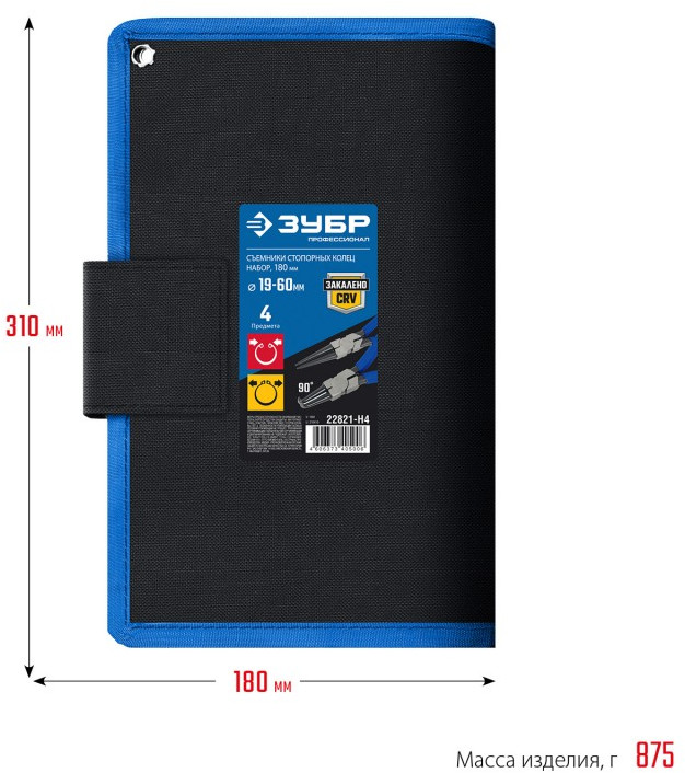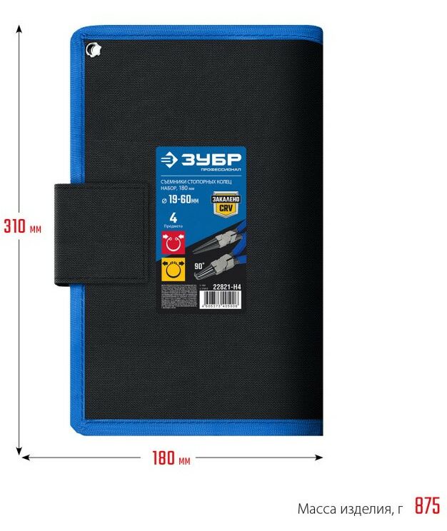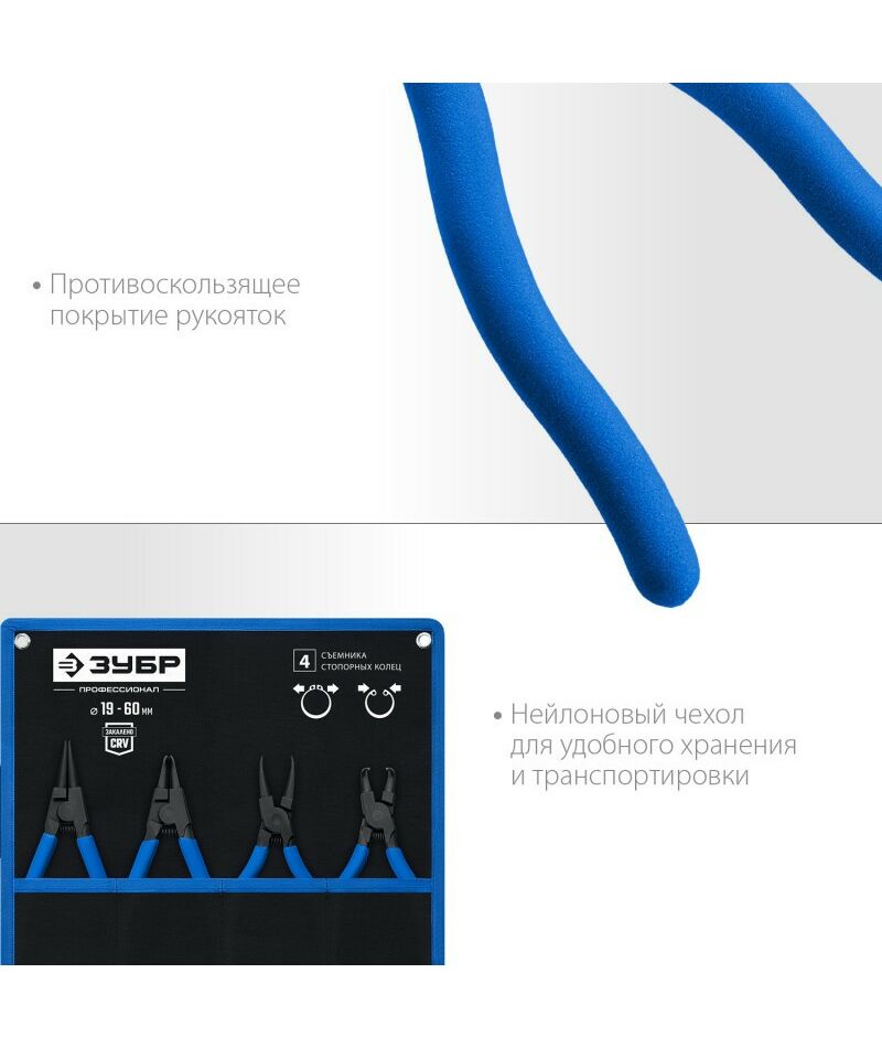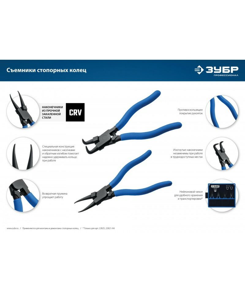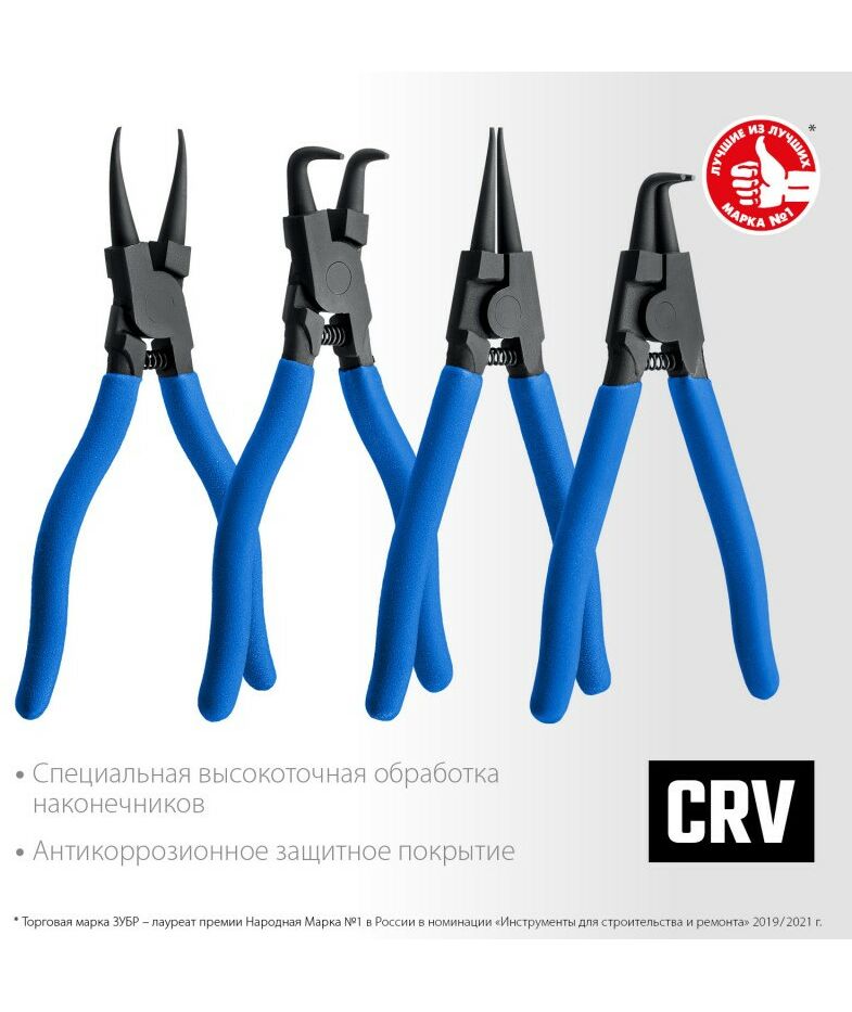 Набор съемников стопорных колец Зубр Профессионал 180 мм 4 шт [22821-H4]