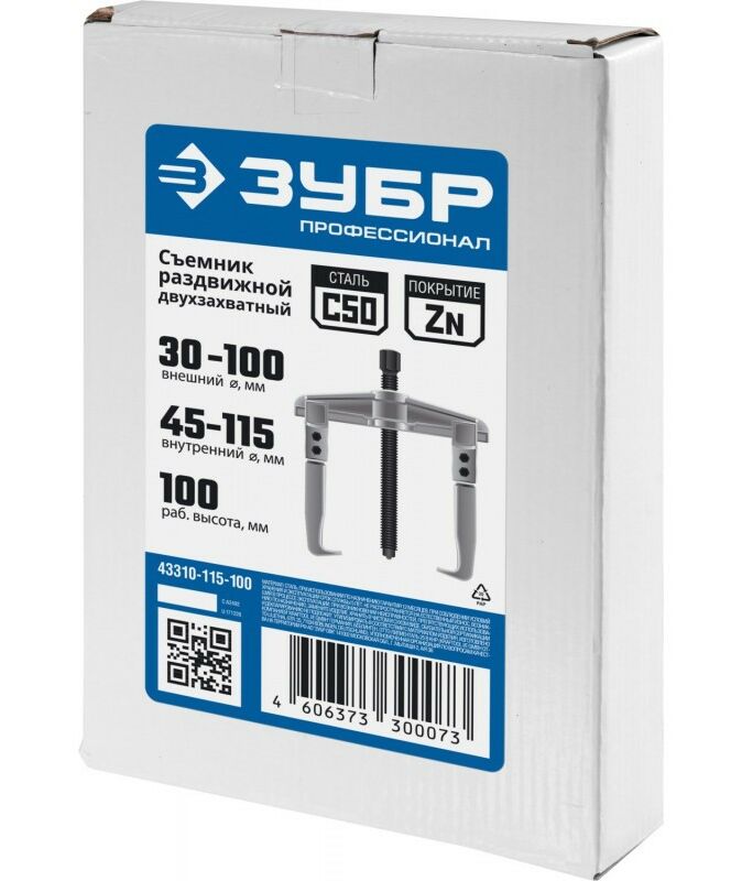 Раздвижной двухзахватный съемник Зубр Профессионал внешний d 30 - 100 мм, внутренний d 45 - 115 мм [43310-115-100]