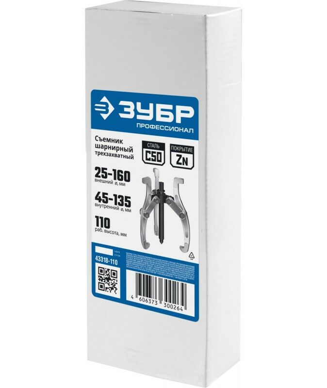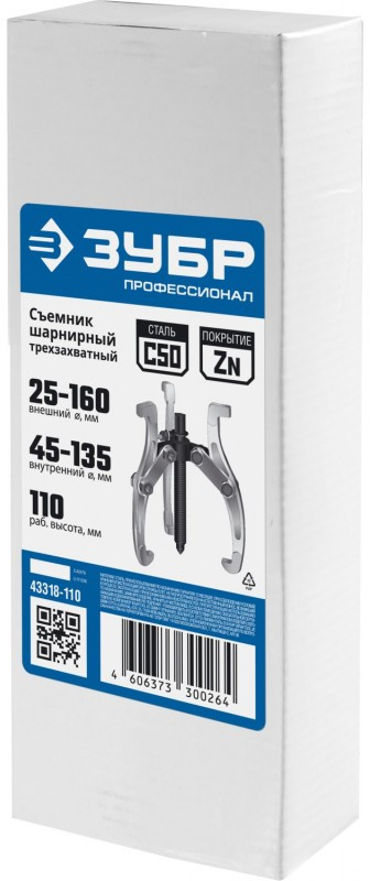 Шарнирный трехзахватный съемник Зубр Профессионал внешний d 25 - 160 мм, внутренний d 45 - 135 мм [43318-110]