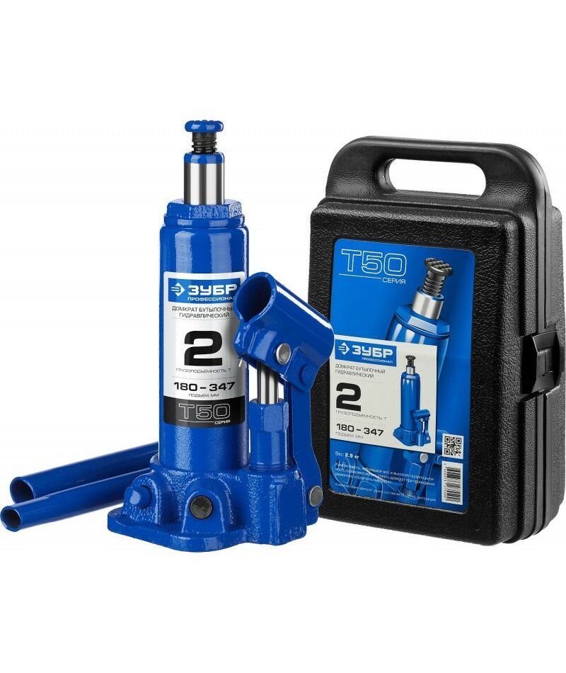 Домкрат бутылочный гидравлический Зубр Профессионал 2т 180-347мм в кейсе [43060-2-K_z01]