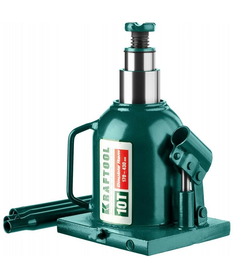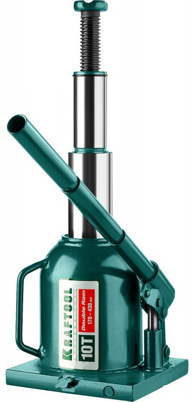 Домкрат двухштоковый бутылочный KRAFTOOL DOUBLE RAM 10т 170-430мм с увеличенным подъемом [43463-10]