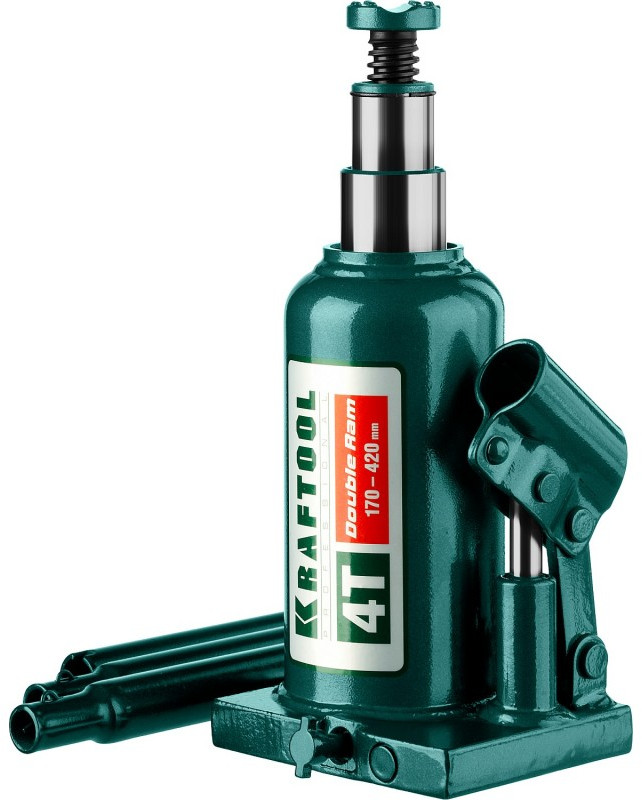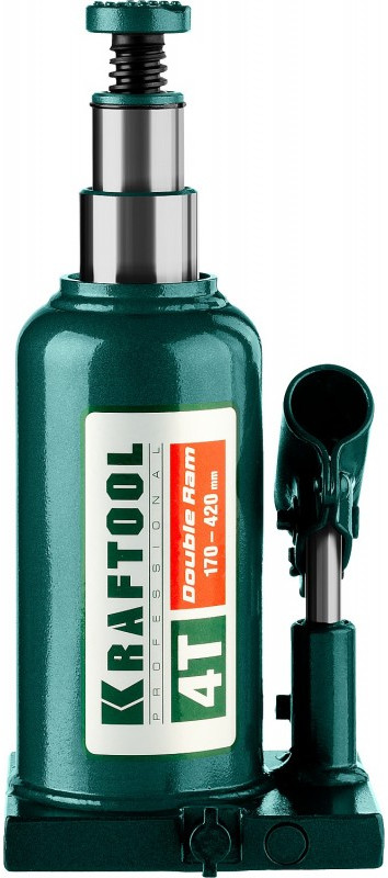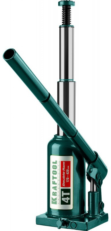 Домкрат двухштоковый бутылочный с увеличенным подъемом KRAFTOOL KRAFT BODY DOUBLE RAM 4т 170-420мм [43463-4]