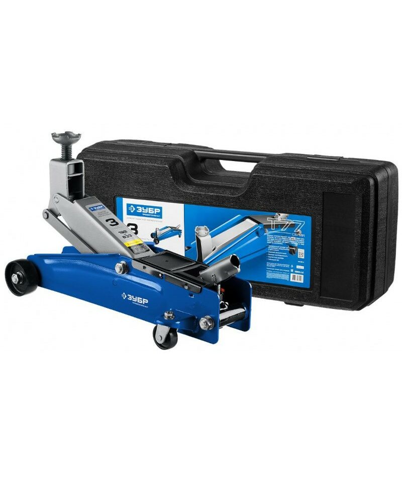 Домкрат гидравлический подкатной Зубр Профессионал 43055-3-K T77, 3т, 192-533мм, в кейсе