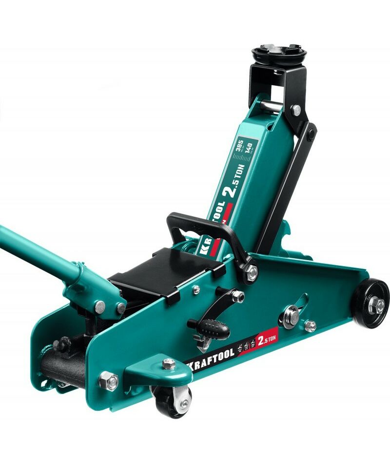 Подкатной домкрат KRAFTOOL S-PIN 2.5т 140-385мм с увеличенным подъемом и фиксатором [43457-2.5]