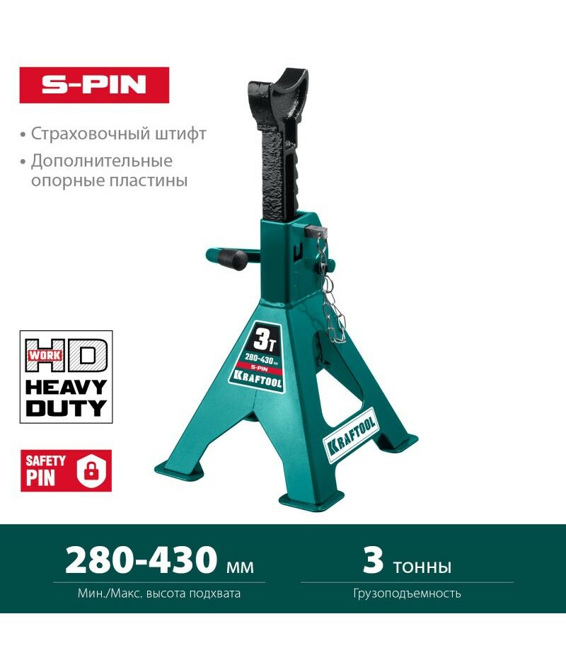 Подставка страховочная усиленная KRAFTOOL S-PIN 3т 280-430мм со штифтом [43465-3]