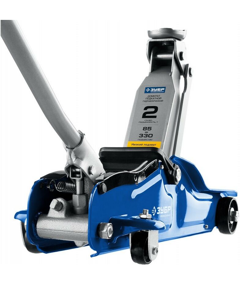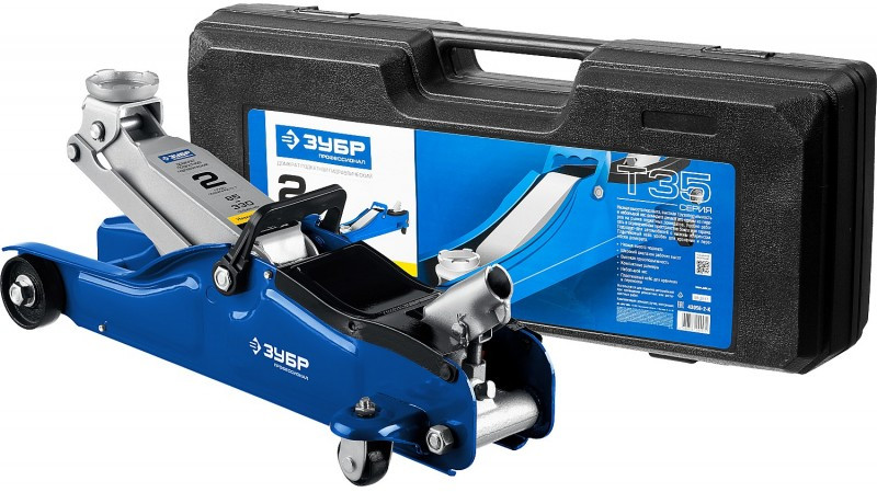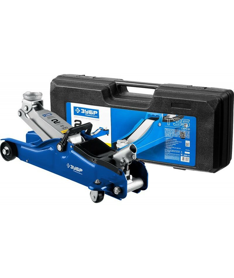 Подкатной домкрат Зубр Профессионал Т-35-K 2т 85-330мм, с низким подхватом, в кейсе [43056-2-K]