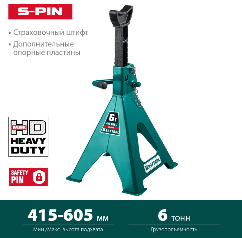 Подставка страховочная усиленная со штифтом KRAFTOOL S-PIN 6т 415-605мм [43465-6]